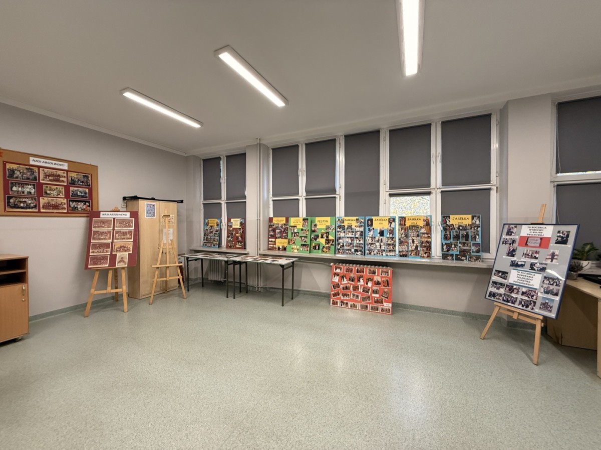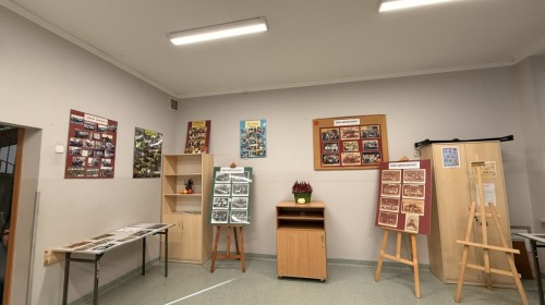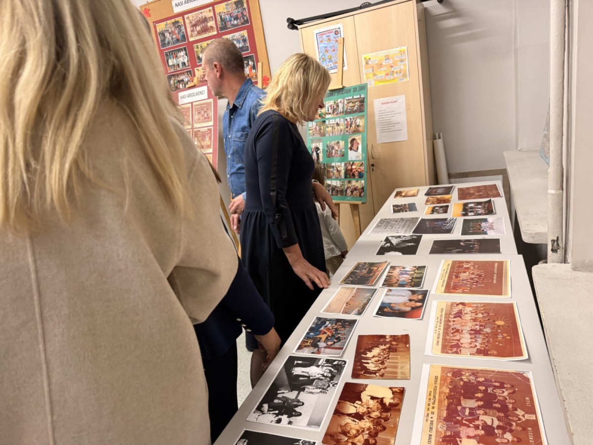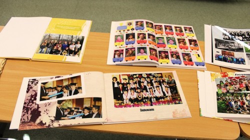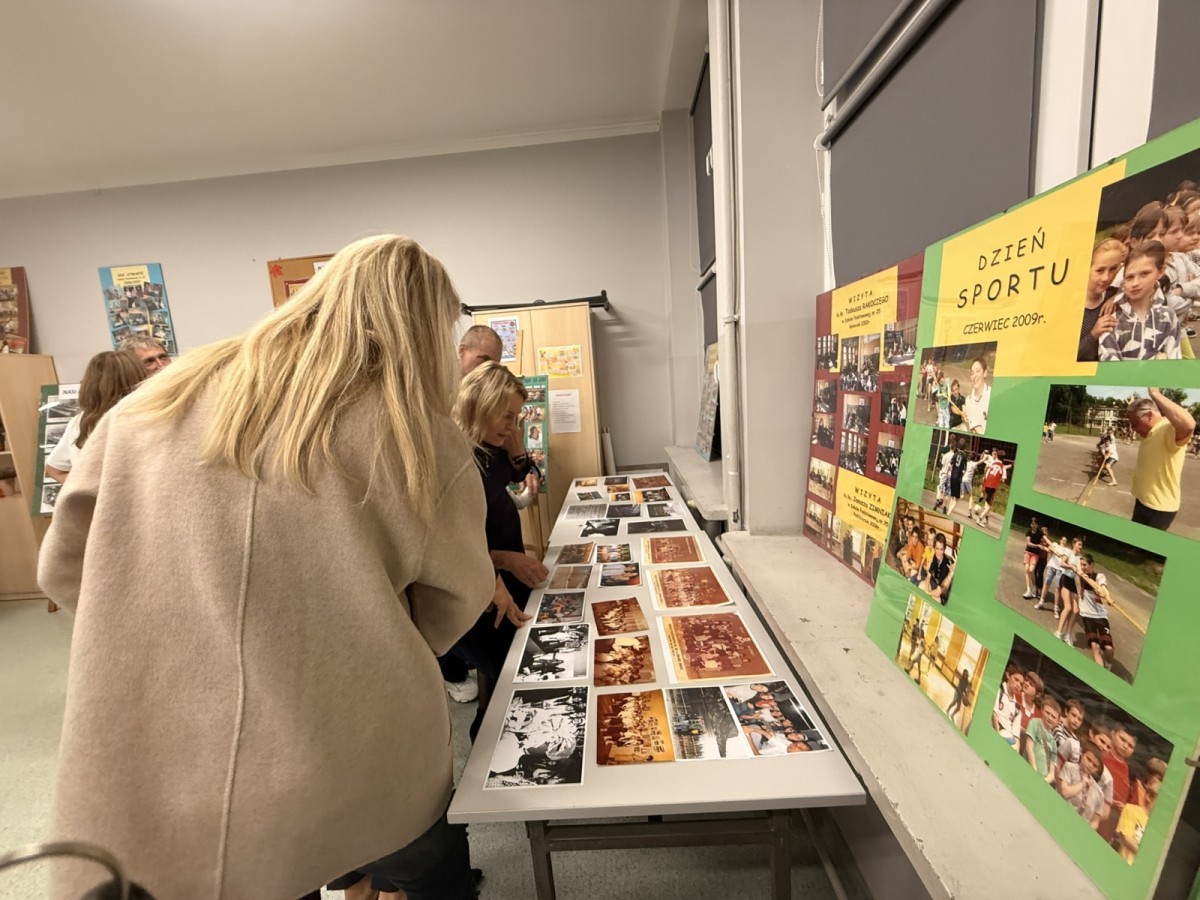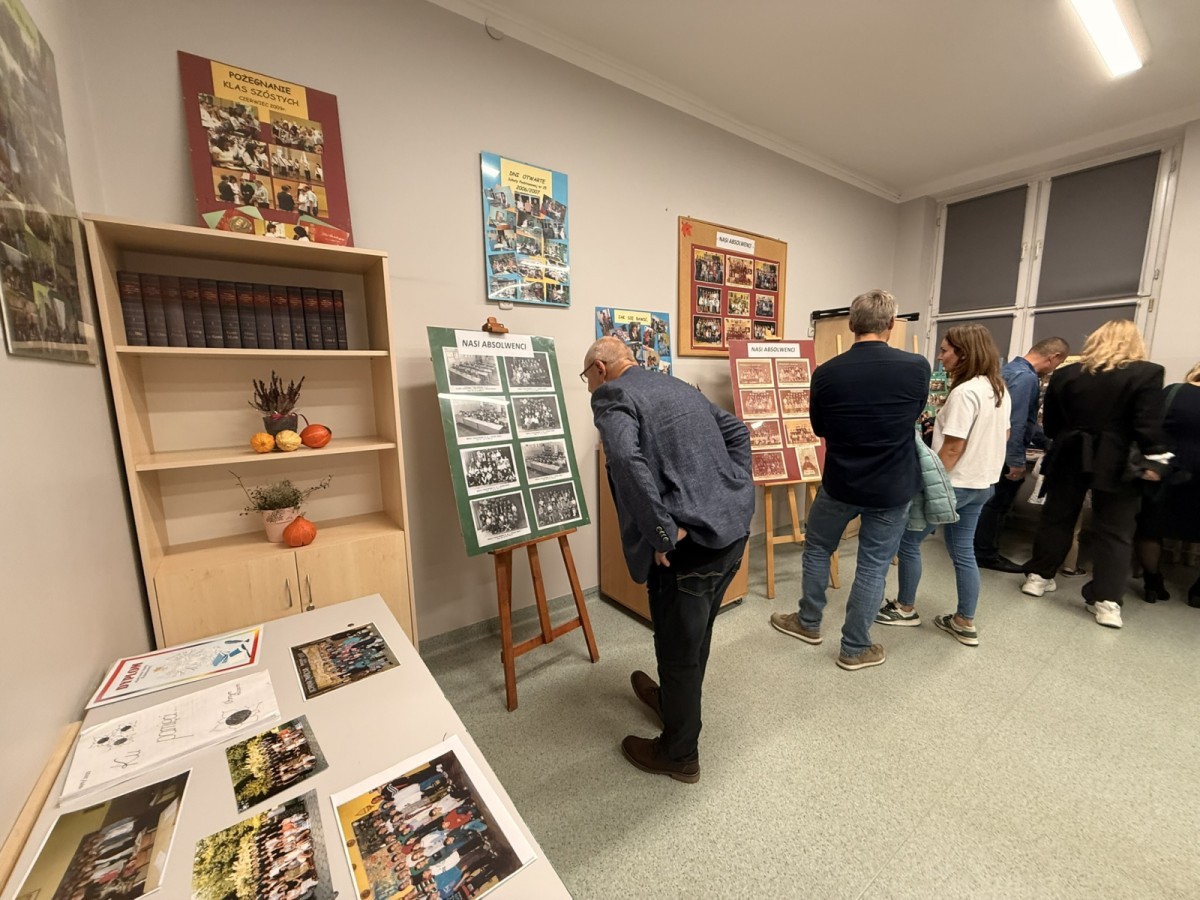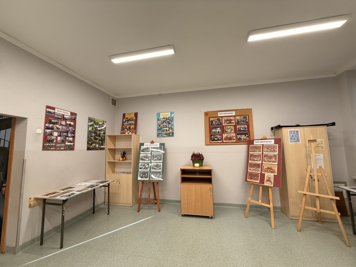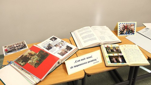 W szkolnej sali można było obejrzeć wystawę pamiątek z minionych lat – stare zdjęcia klasowe i tabla absolwentów, dawne sprzęty szkolne, mundurki, tarcze uczniowskie oraz inne przedmioty,
