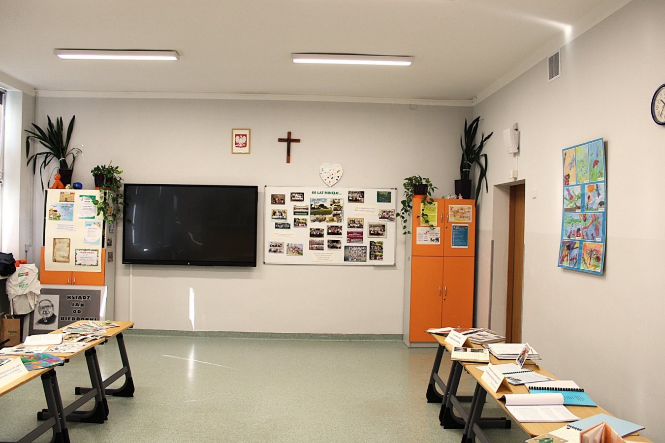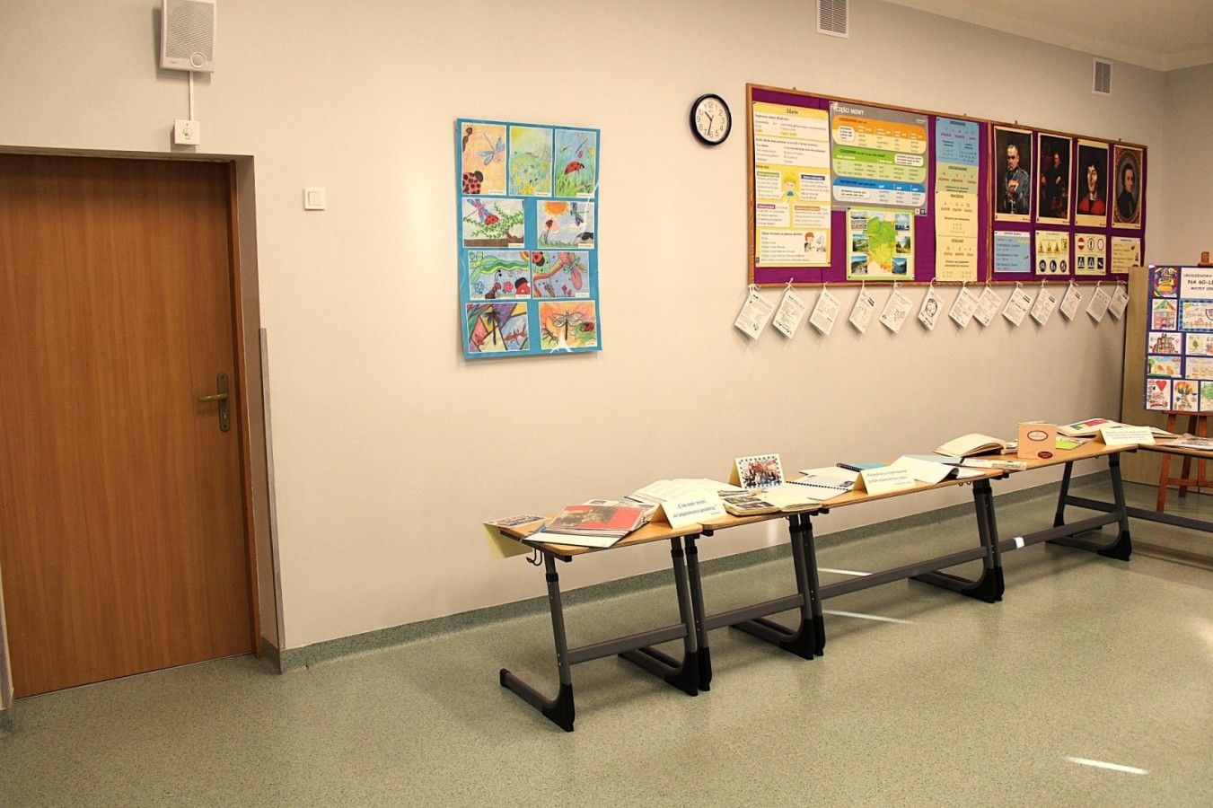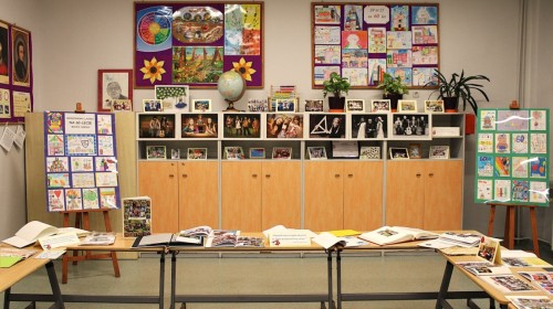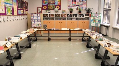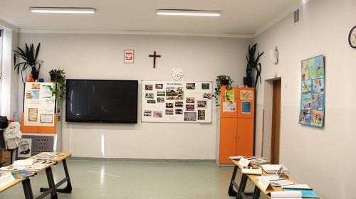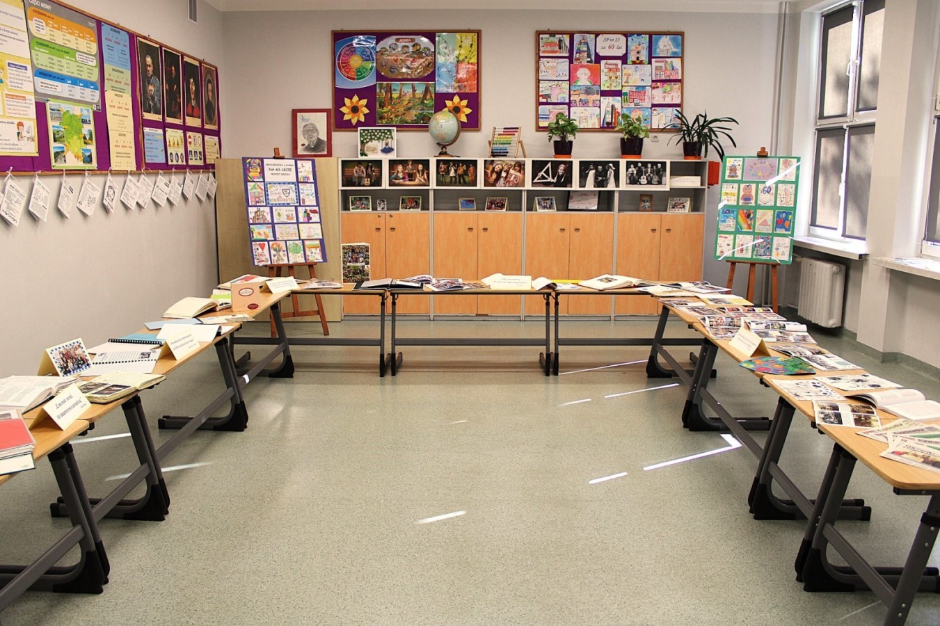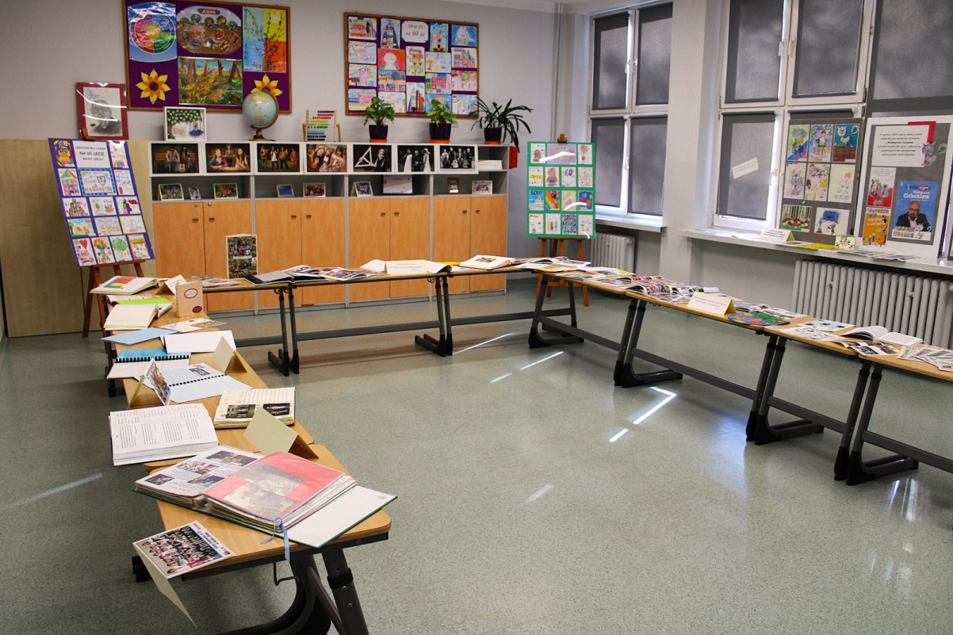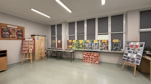 W szkolnej sali można było obejrzeć wystawę pamiątek z minionych lat – stare zdjęcia klasowe i tabla absolwentów, dawne sprzęty szkolne, mundurki, tarcze uczniowskie oraz inne przedmioty,