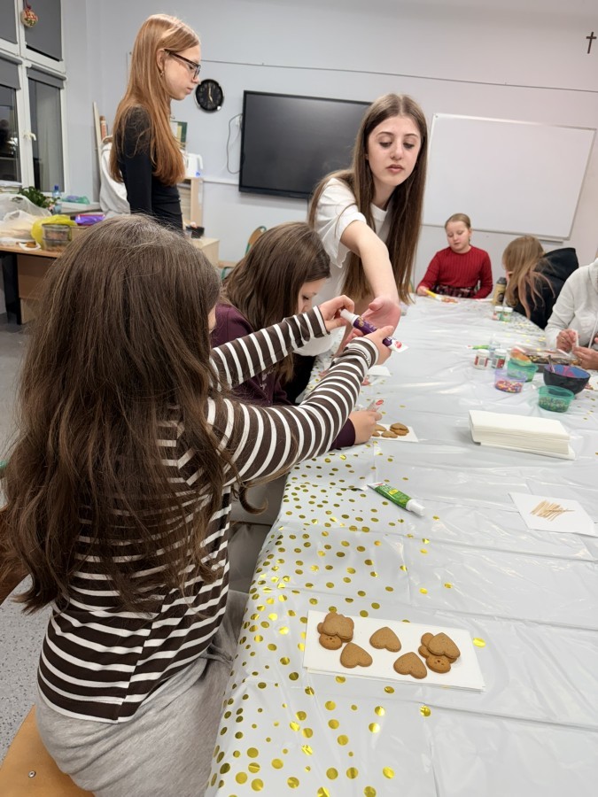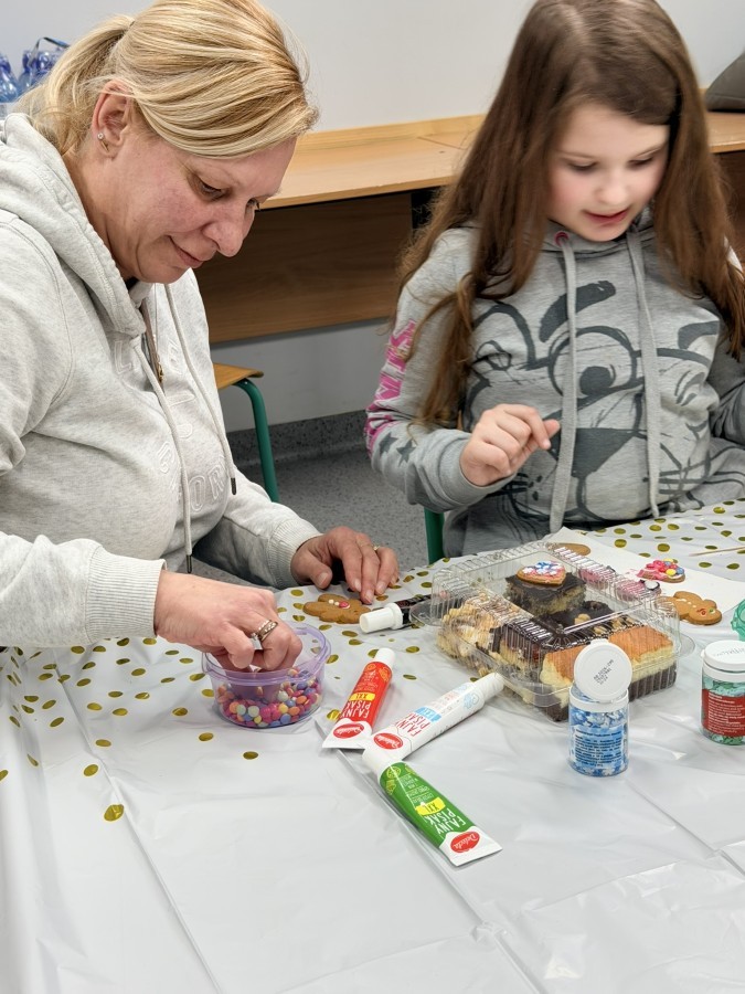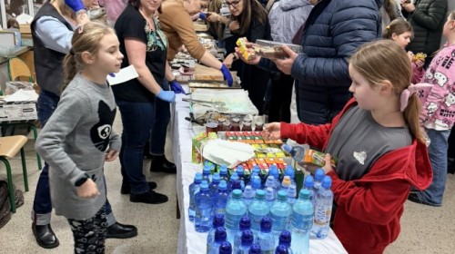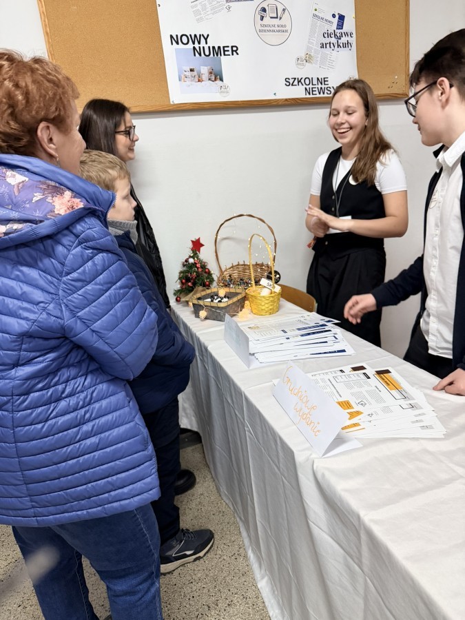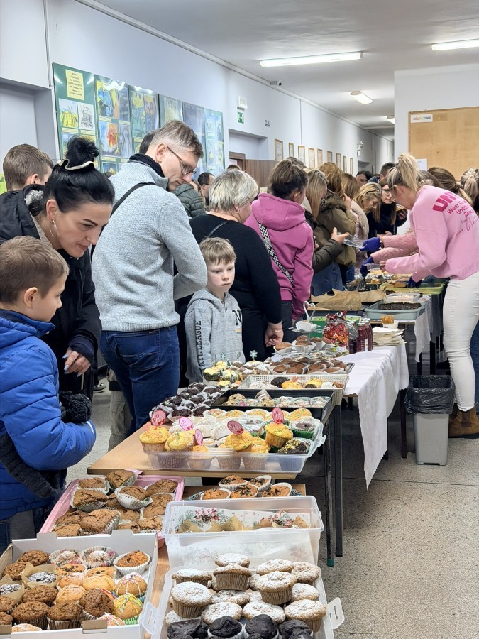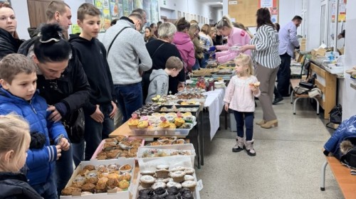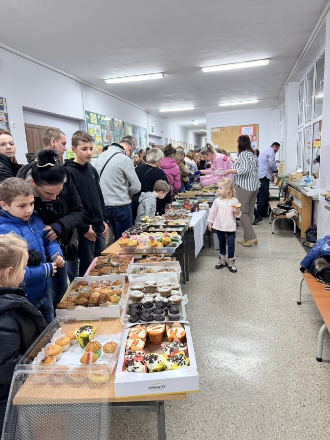 Tego dnia szkolne korytarze tętniły życiem także dzięki kawiarence, w której można było zakupić domowe ciasta i słodkości. Zapach wypieków i miła atmosfera sprzyjały rozmowom oraz wspólnemu spędzaniu czasu.