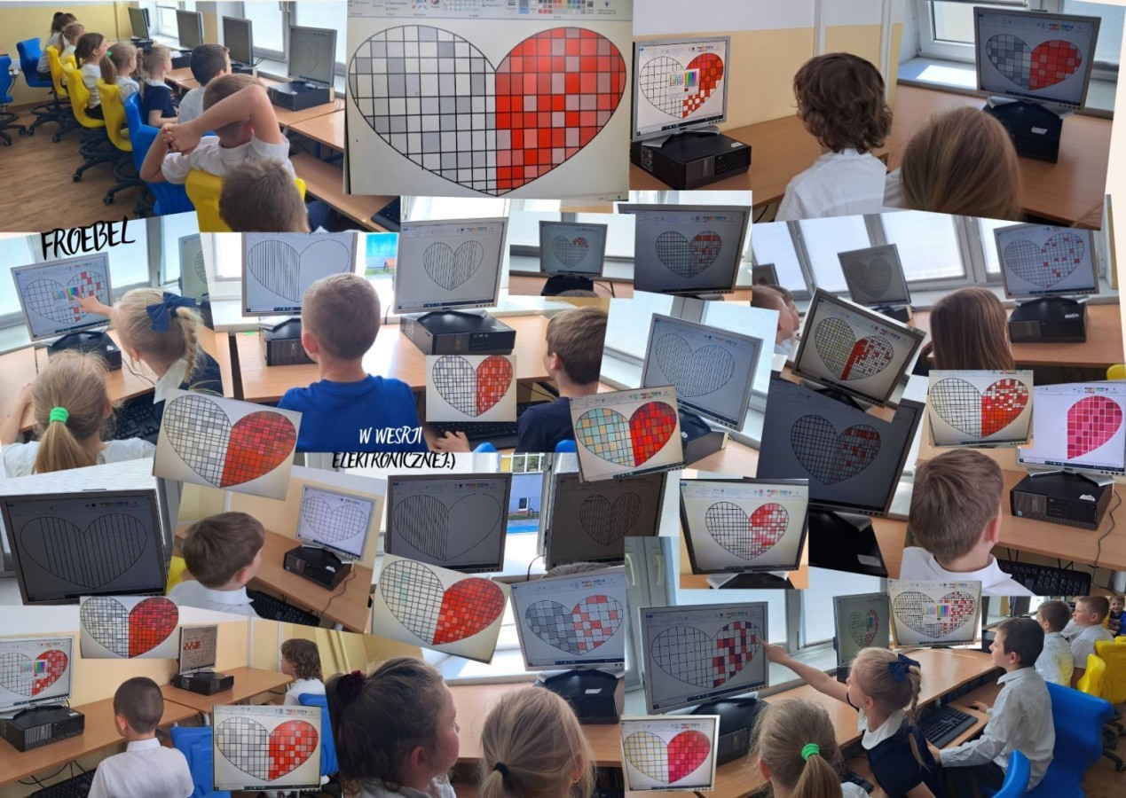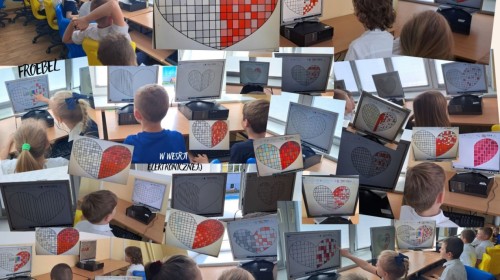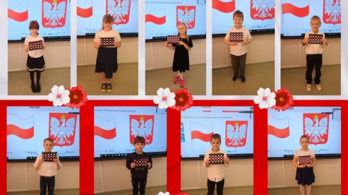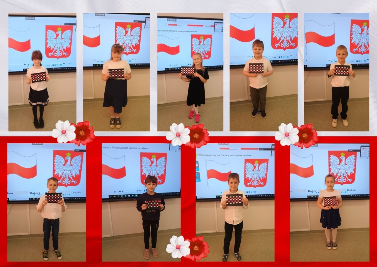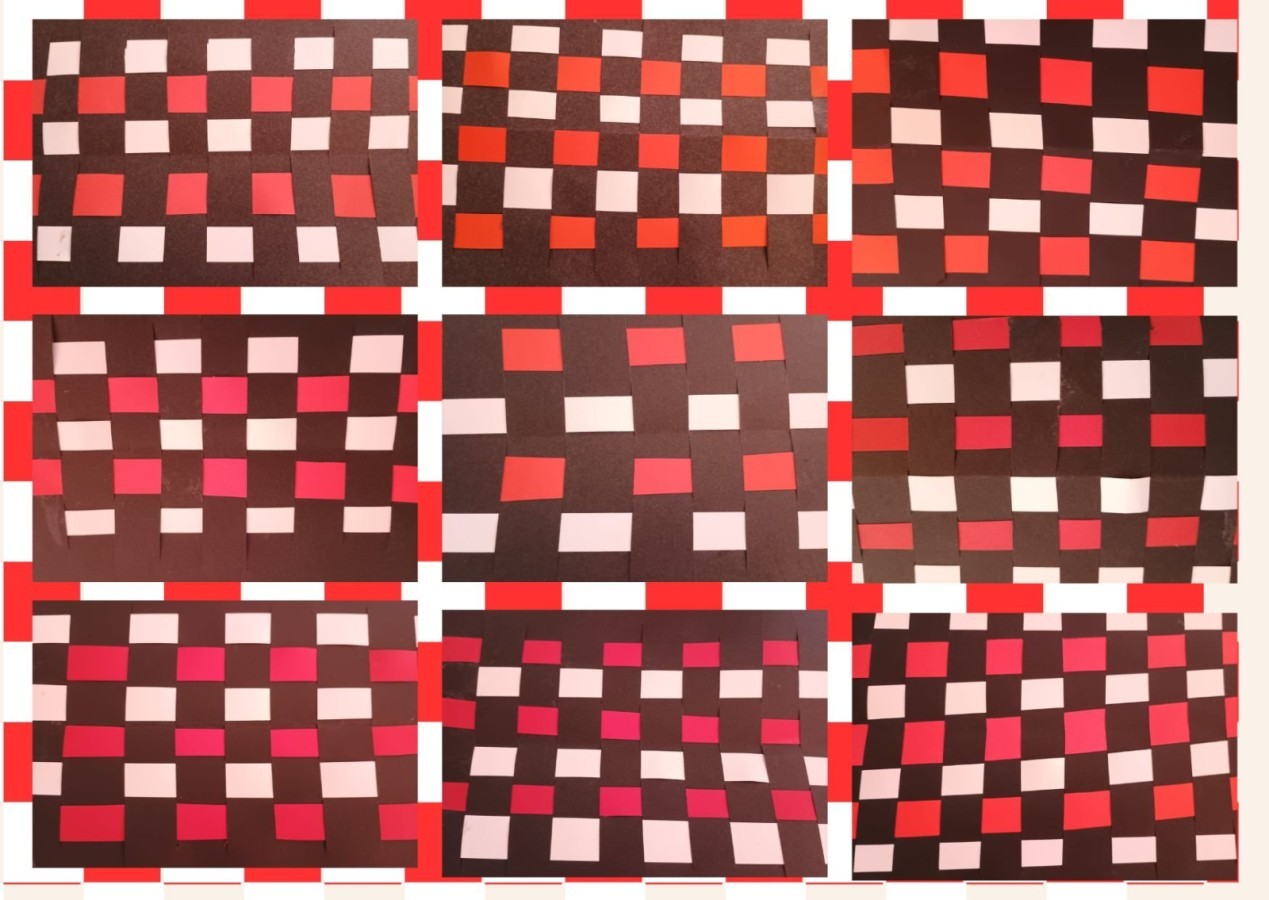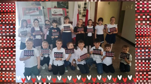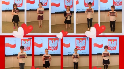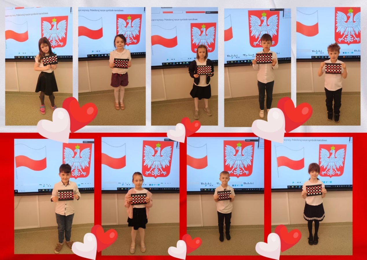 Na zakończenie tej wspaniałej „Przygody ze sztuką” z okazji Świąt Majowych pierwszaki wykonały freblowskie przeplatanki – biało – czerwone flagi oraz serduszka.