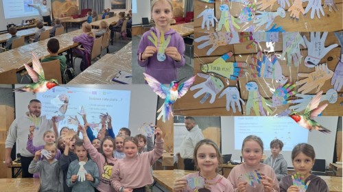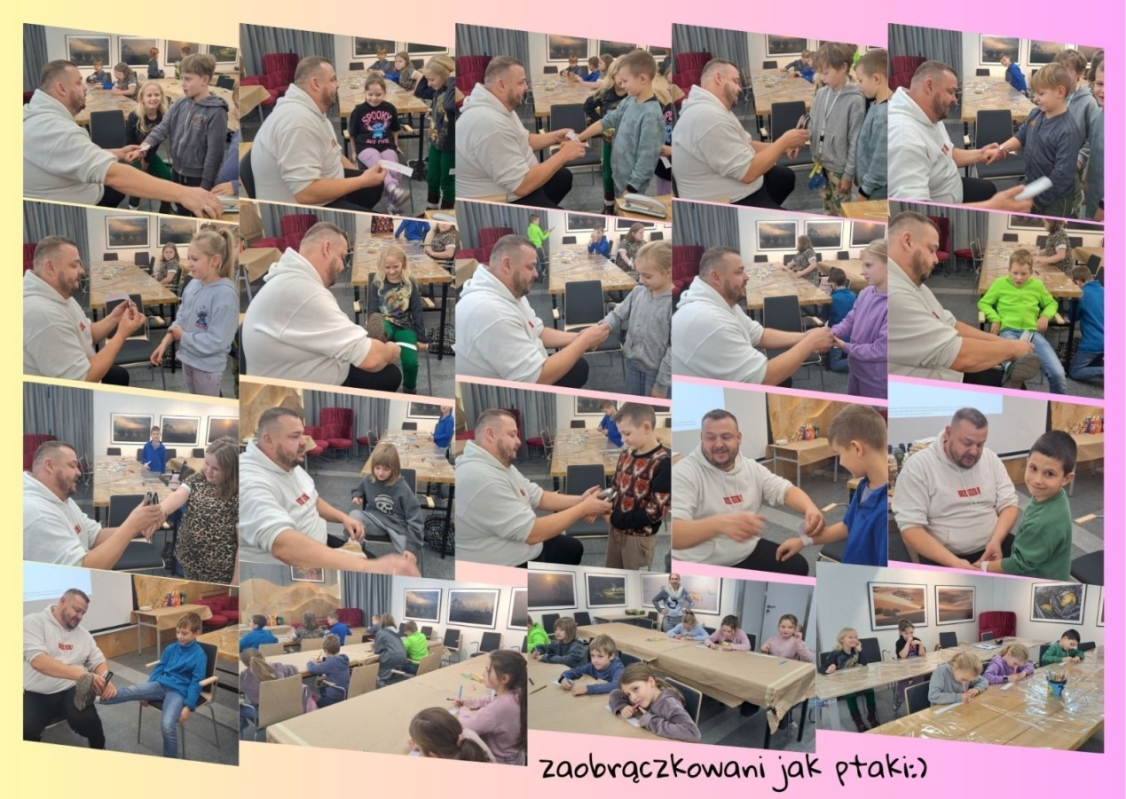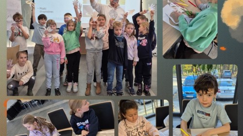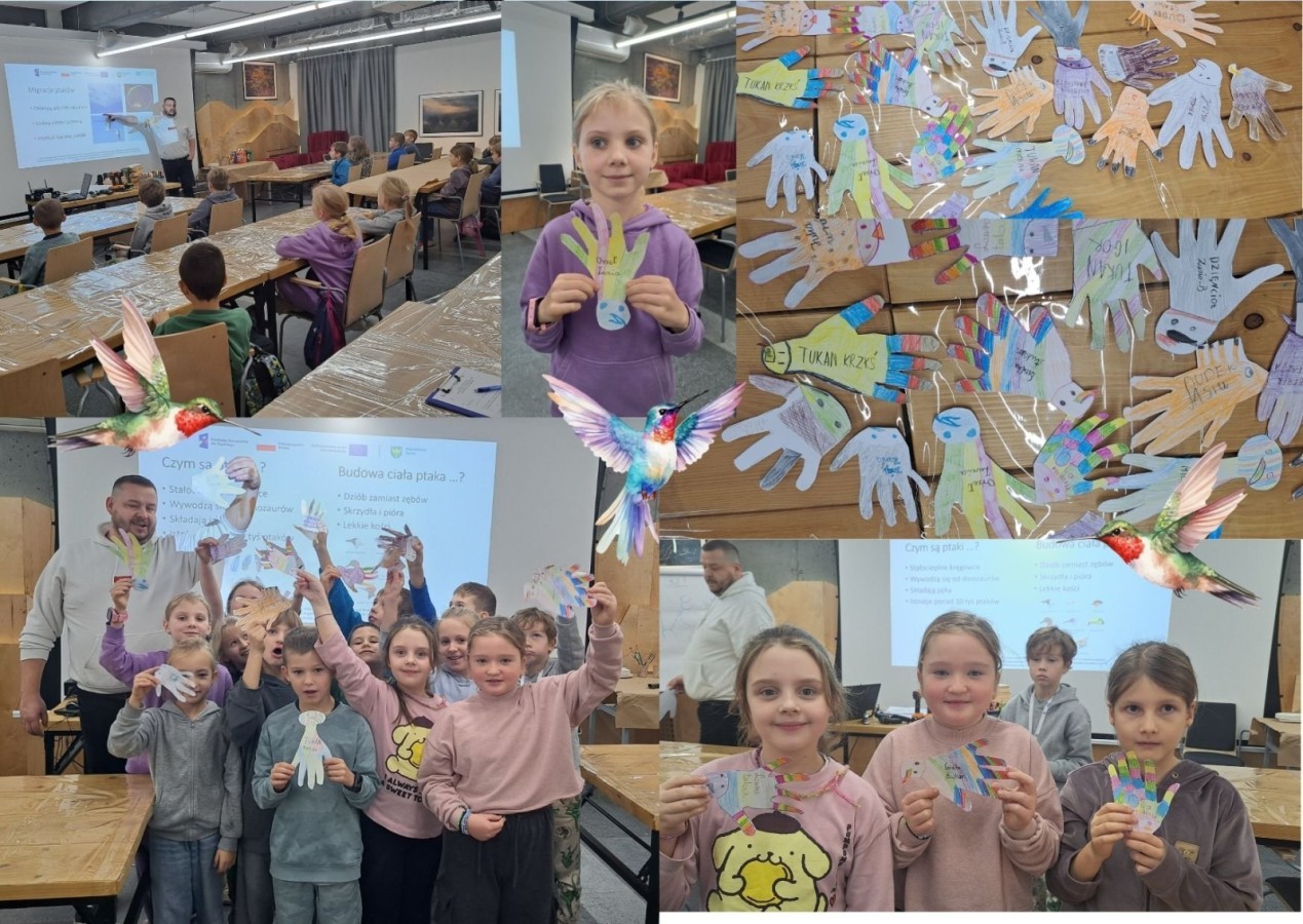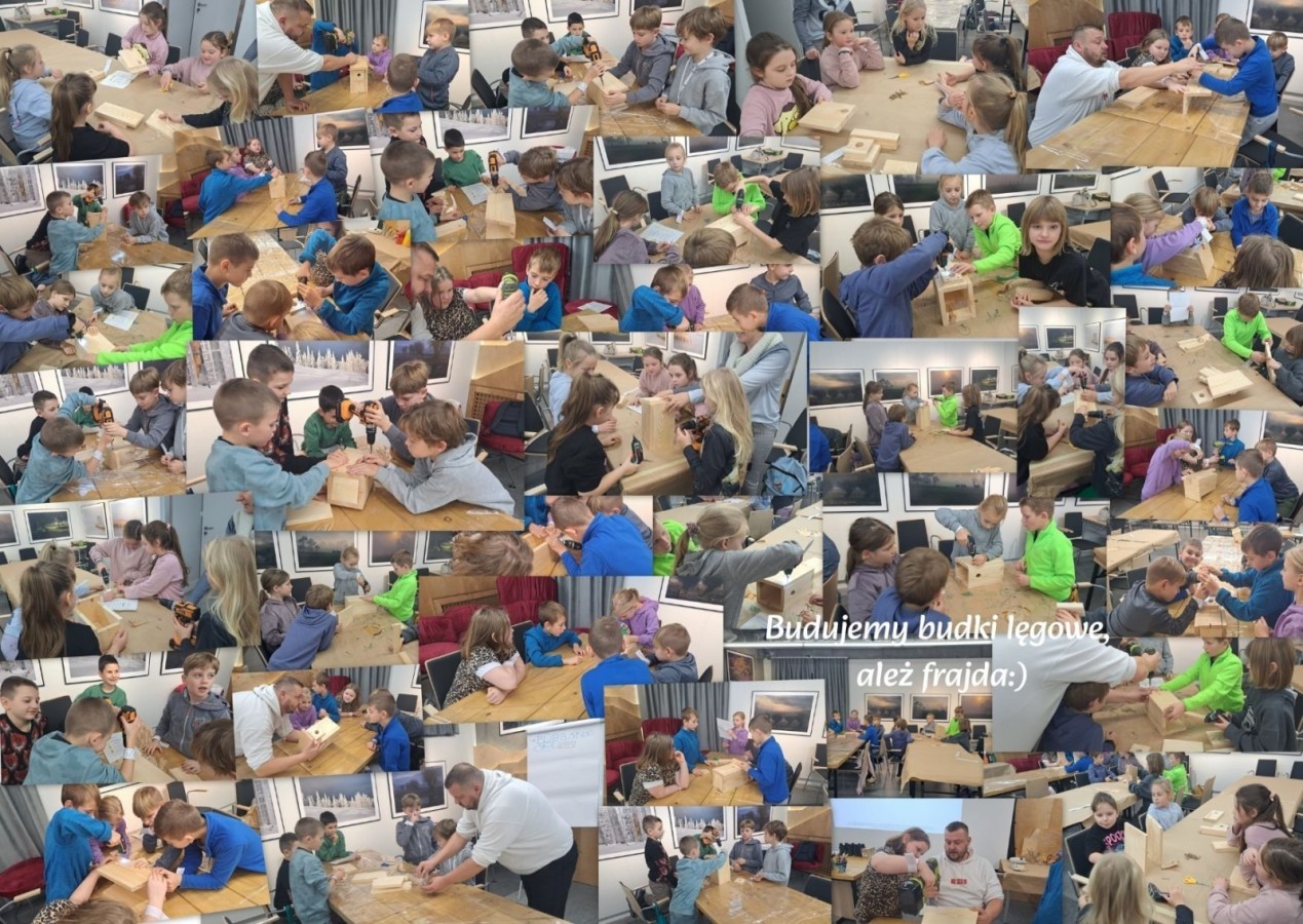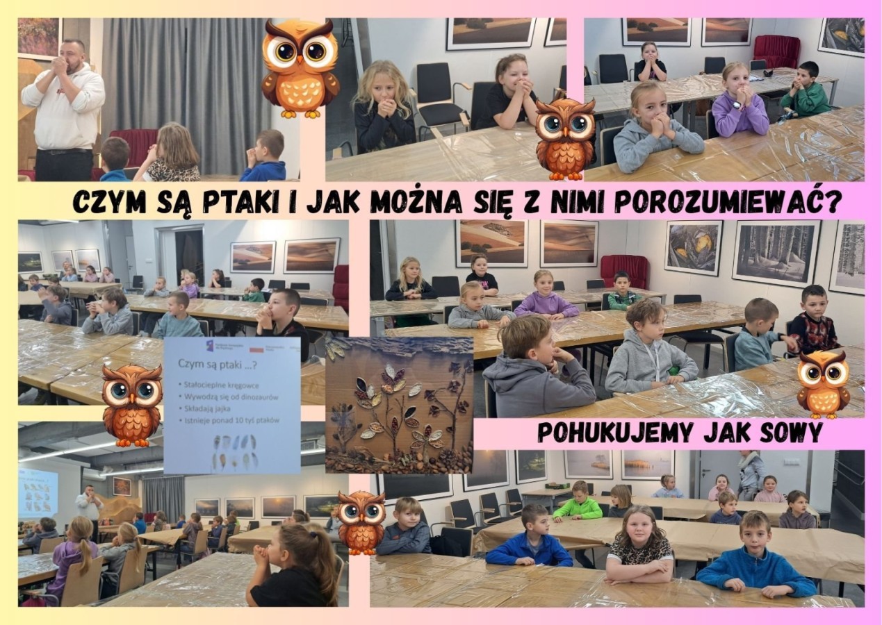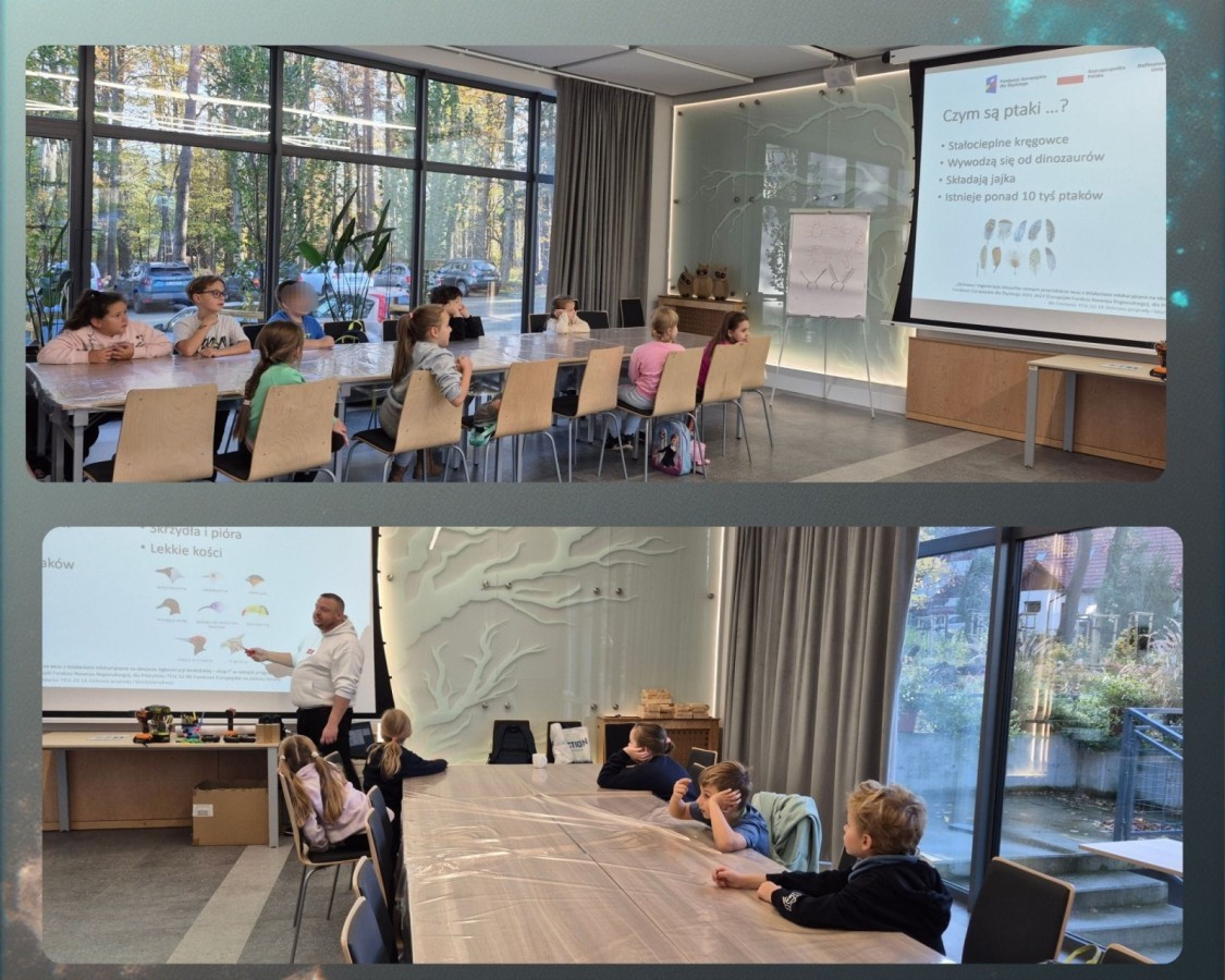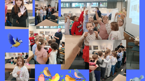 Kolejnym wykonanym zadaniem były zajęcia w Centrum Edukacji Ekologicznej „Ekosynteza” pt. „Poznajemy ptaki”. W czasie zajęć dzieci nie tylko nauczyły się rozpoznawać najbardziej popularne ptaki zamieszkujące nasz kraj ale również dowiedziały się po co się obrączkuje ptaki, jak je chronić. Samodzielnie wykonały z przygotowanych materiałów budki lęgowe dla ptaków, które zostaną przymocowane na drzewach w pobliskim lasku po ustaleniu tego z leśnikiem. Podsumowaniem zajęć było oglądnie ptaków w ich naturalnym środowisku przez lornetki