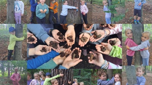 z ładnej pogody poznawali drzewa, krzewy oraz zwierzęta z pobliskiego lasu. Pomagały w tym licznie rozstawione tablice informacyjne na ścieżkach dydaktycznych.