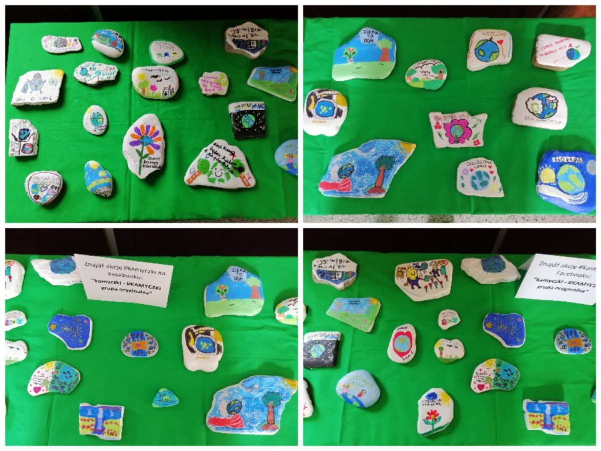 Wystawę dzieł naszych uczniów można podziwiać przy głównym wejściu do szkoły. Następnie uczniowie będą mogli zostawić swoje #kamyczki w dowolnych miejscach w Bielsku-Białej lub w całej Polsce przy okazji świątecznych i wakacyjnych wyjazdów.