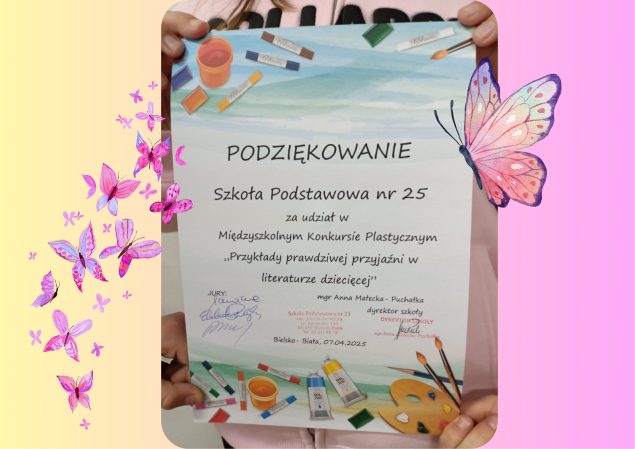 Uczennice klas trzecich wzięły udział w Międzyszkolnym Konkursie Plastycznym „Przykłady prawdziwej przyjaźni w literaturze dziecięcej” organizowanym przez Szkołę Podstawową nr 23 w Bielsku-Białej.