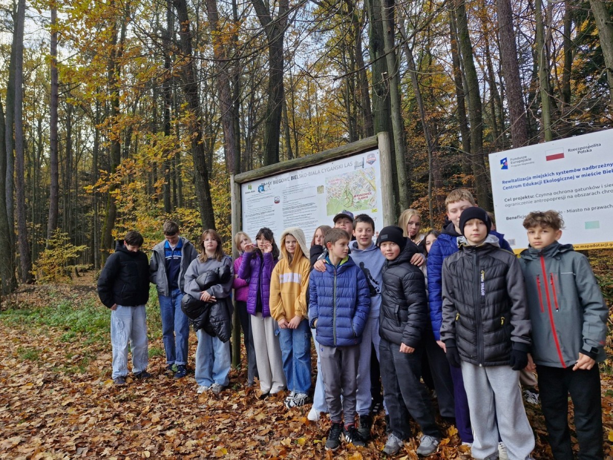 W czasie spaceru do Cygańskiego Lasu uczniowie klasy 6b poznawali lokalną przyrodę i sposoby jej ochrony oraz podziwiali barwy jesieni.