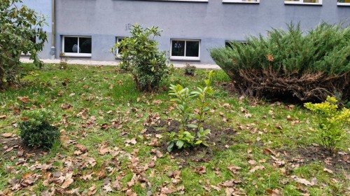 Piękne laurowiśnie, trzmielina, różanecznik, berberys Harlequin i pieris japoński zdobią ogródek przy wejściu do naszej szkoły i będą mam przypominały o działaniu ogrodniczym w ramach konkursu „Szanuj energię, chroń klimat”.