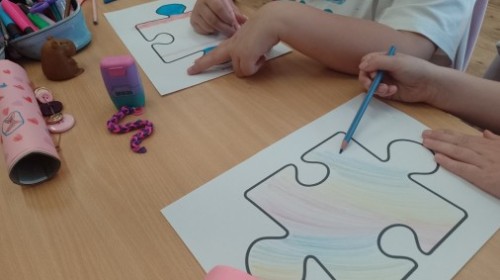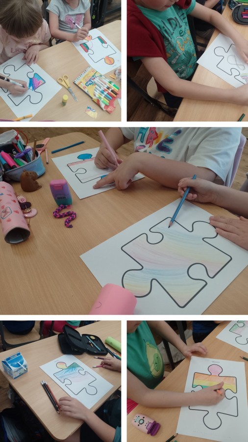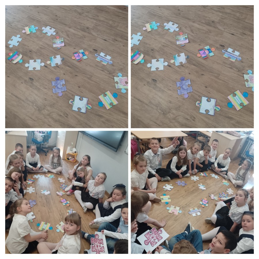 Z tej okazji klasa 1c w ramach realizacji projektu "Jak mówić o niepełnosprawności" wzięła udział w zajęciach, których tematem był autyzm. Dzieci wysłuchały opowiadania "Tajemnicze słowo- autyzm", które było wstępem do dalszej dyskusji. Obejrzały prezentacje i animacje na temat spektrum autyzmu, które pomogły zrozumieć specyfikę tego zaburzenia, dowiedziały się również, jakie są możliwości porozumiewania się z osobą autystyczną, która nie mówi. Na koniec zajęć uczniowie kolorowali kontur puzzla-symbol osób z autyzmem. Wspólnie ułożyliśmy go w znak nieskończoności, który podkreśla różnorodność osób w spektrum.