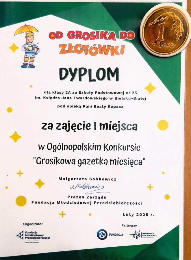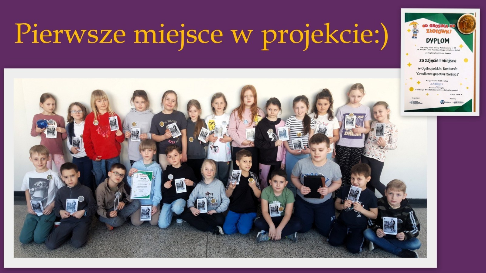 Uczniowie klasy 3 a przez dziesięć miesięcy brali udział w Ogólnopolskim Projekcie Edukacyjnym Od Grosika do Złotówki.