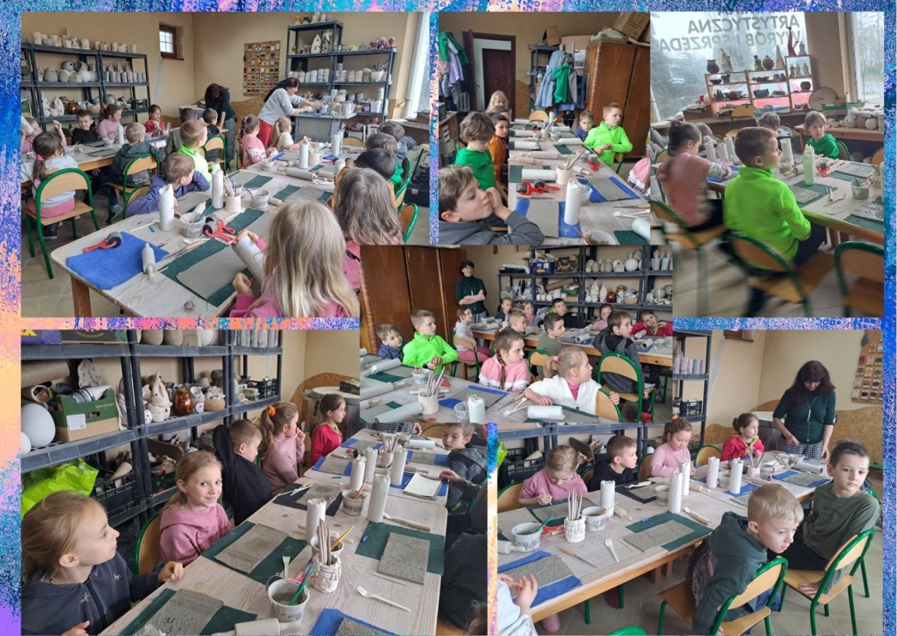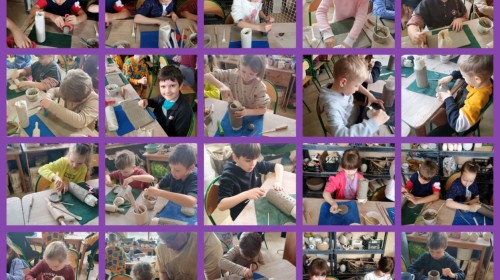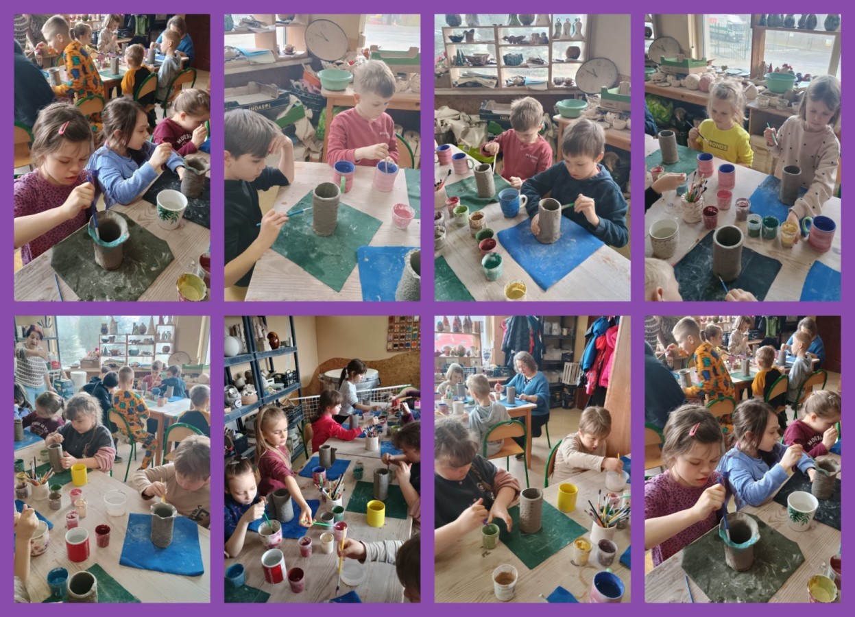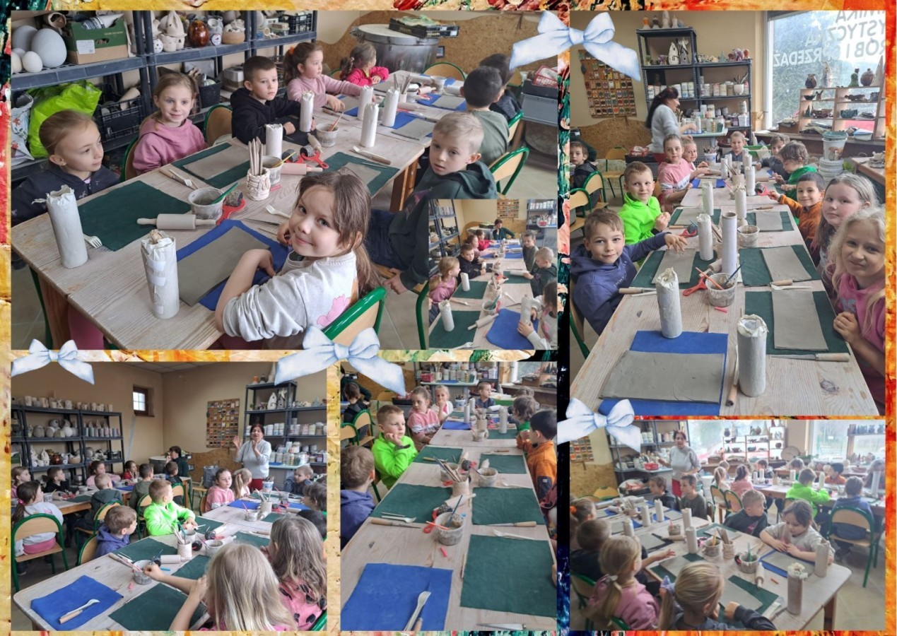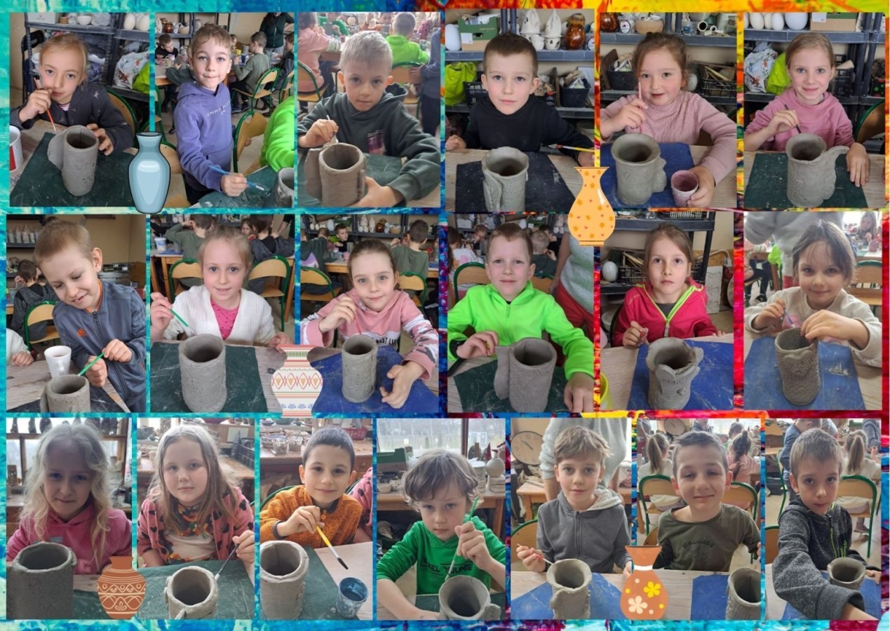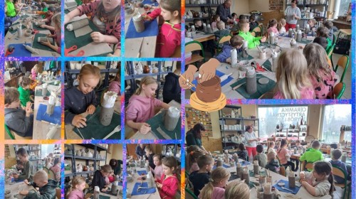 Uczniowie klasy 1a i 1b odwiedzili pracownię ceramiki „Maj- Art”, aby wcielić się w małych artystów i „wyrzeźbić” piękne prezenty dla swoich mam z okazji majowego święta – wazoniki