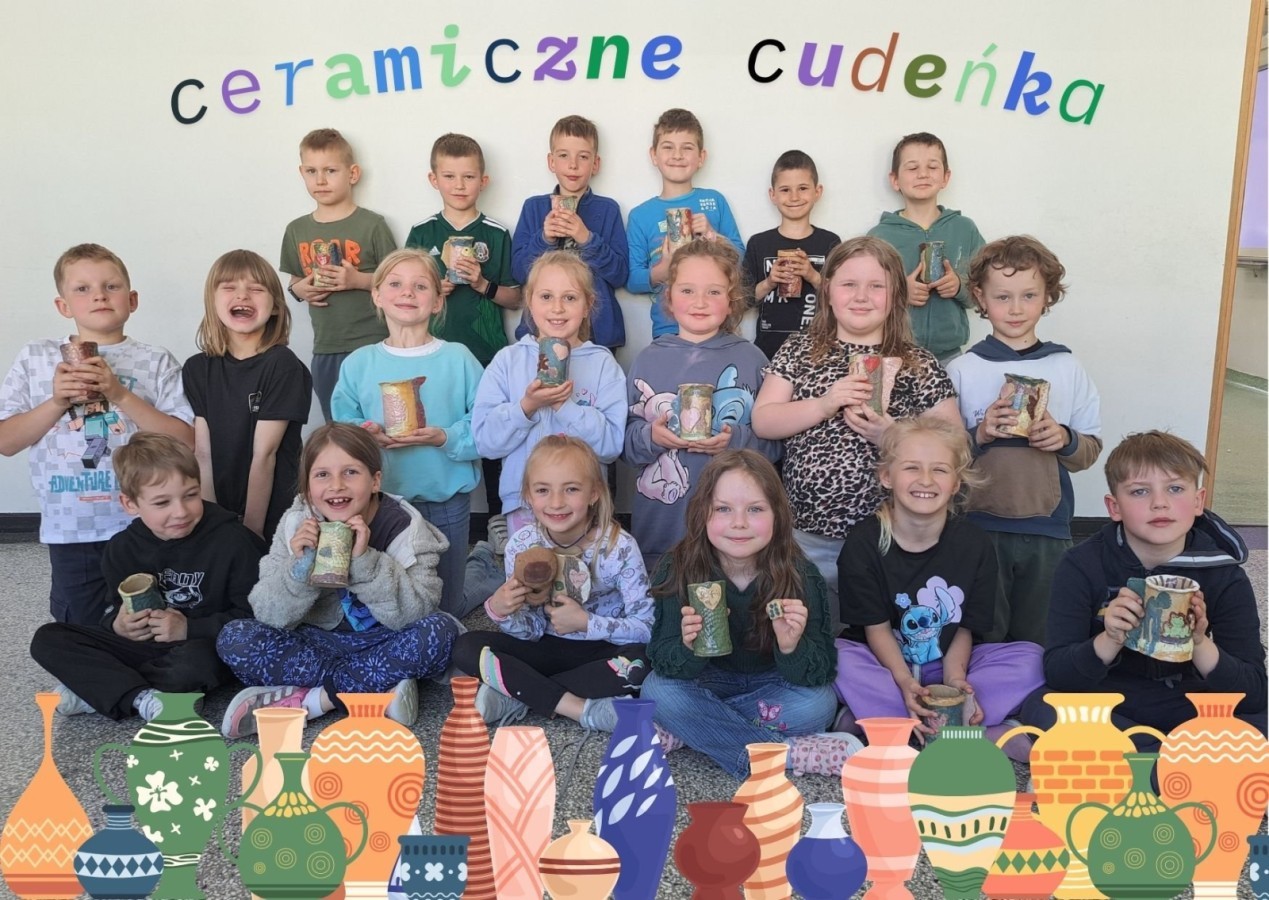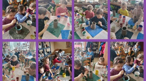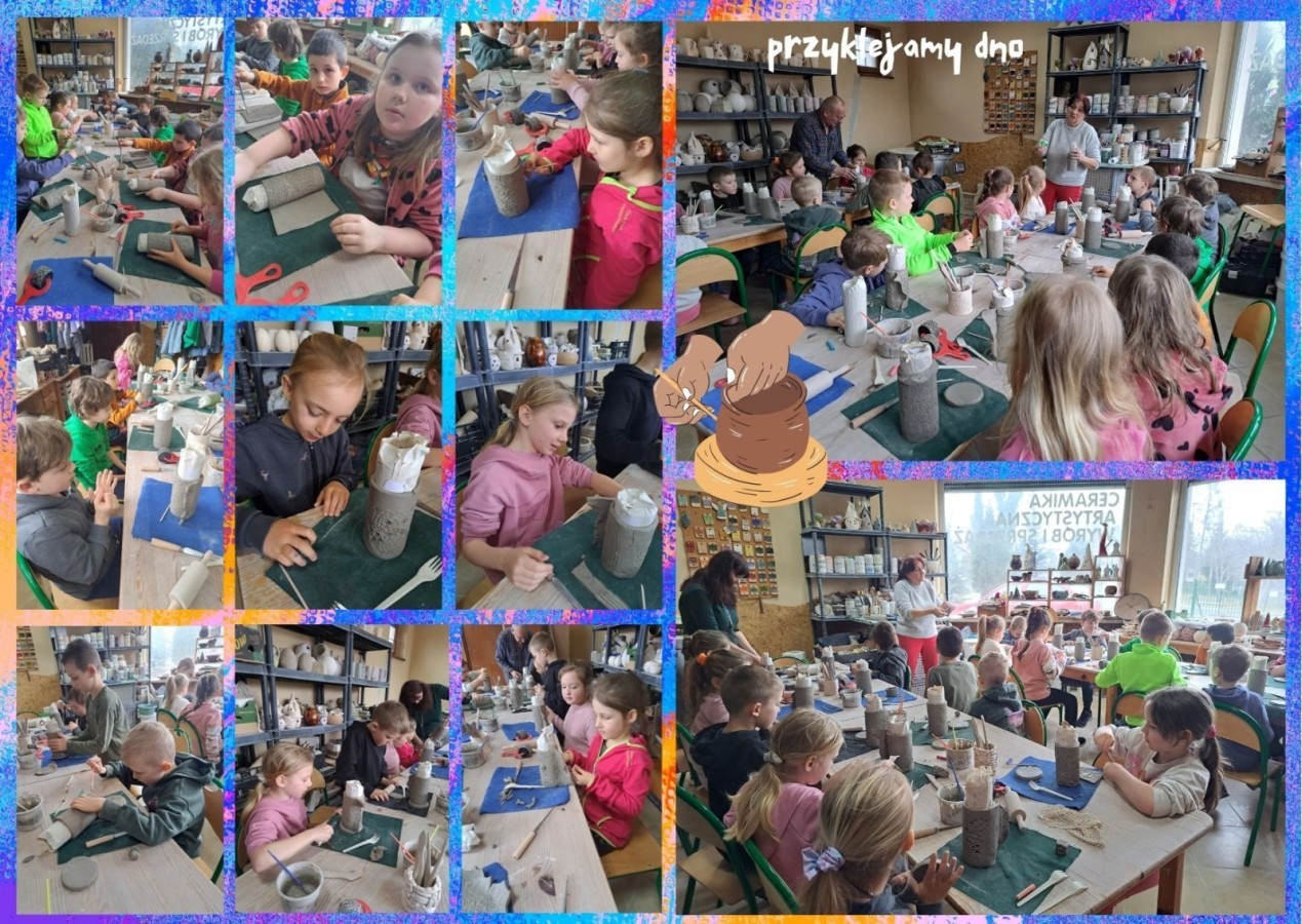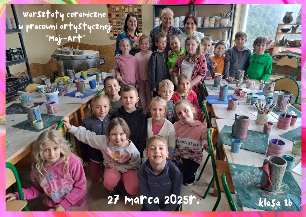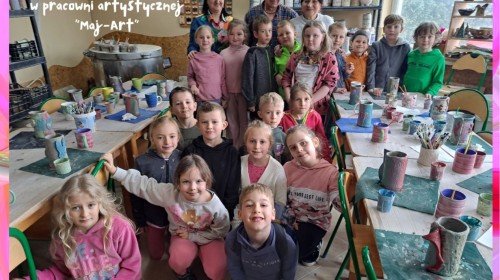 Uczniowie klasy 1a i 1b odwiedzili pracownię ceramiki „Maj- Art”, aby wcielić się w małych artystów i „wyrzeźbić” piękne prezenty dla swoich mam z okazji majowego święta – wazoniki