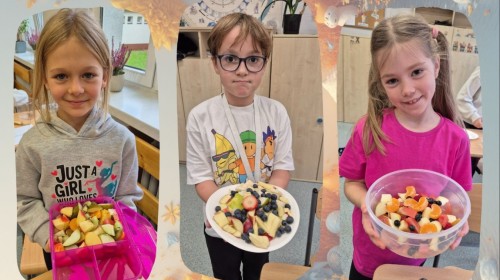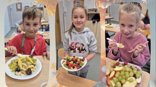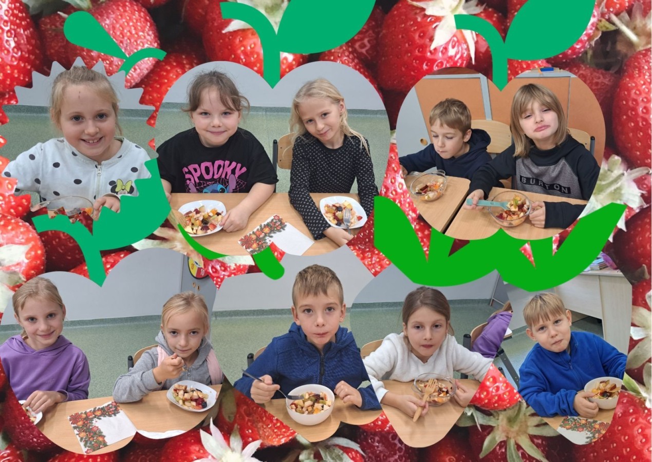 Każda z klas przygotowała fantastyczną, zdrową i kolorową sałatkę owocową. Drugoklasiści nie zapomnieli o przygotowaniu stanowiska pracy, umyciu owoców i wykazali się także umiejętnością posługiwania się nożem. Na koniec ze smakiem zabrali się do degustacji swoich potraw.