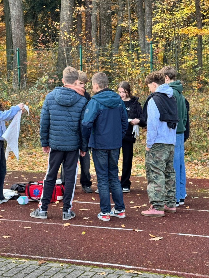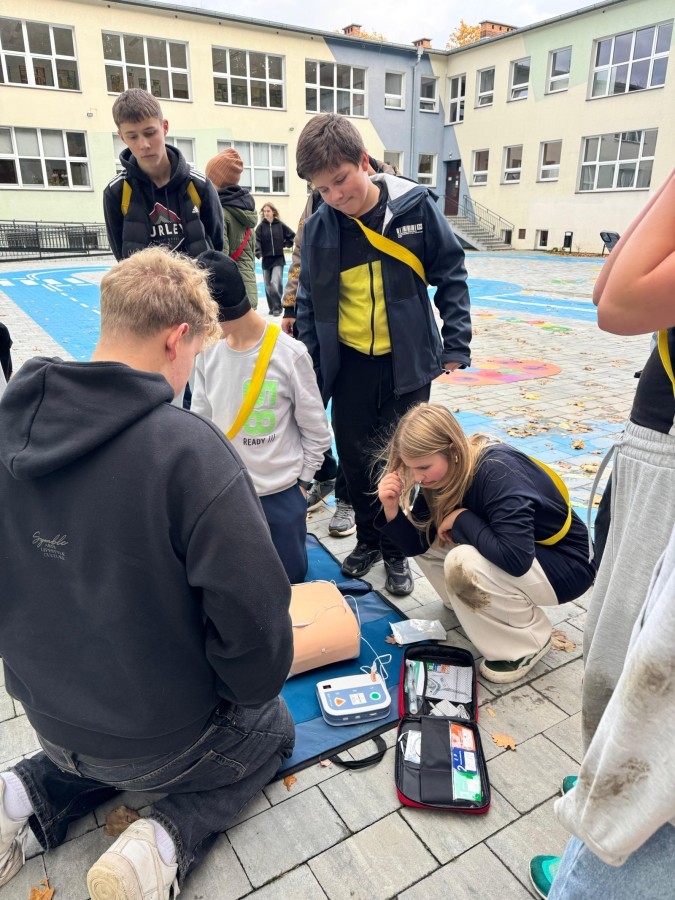 Dnia 28 października w naszej szkole odbyły się praktyczne warsztaty z pierwszej pomocy, podczas których uczniowie klas 7 poznali zasady udzielania pomocy osobie nieprzytomnej oraz przećwiczyli resuscytację krążeniowo-oddechową (CPR) na fantomach.