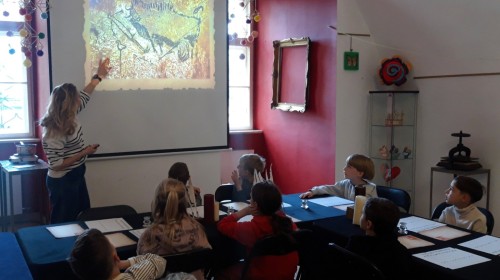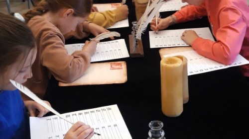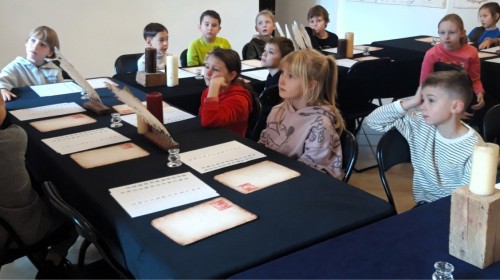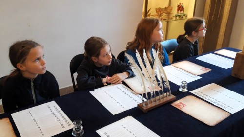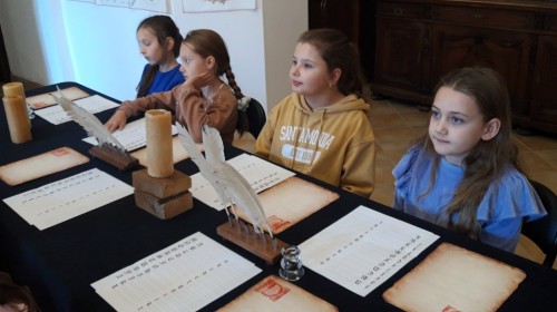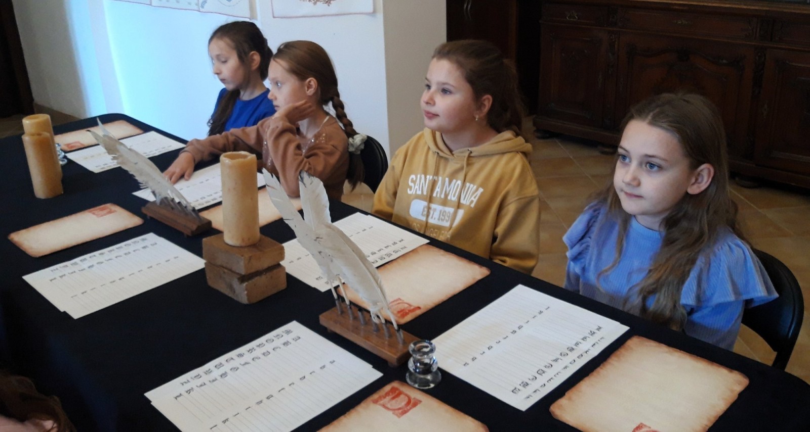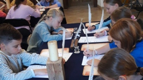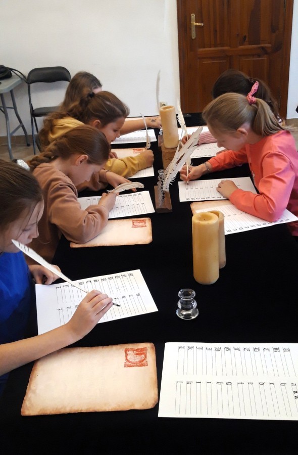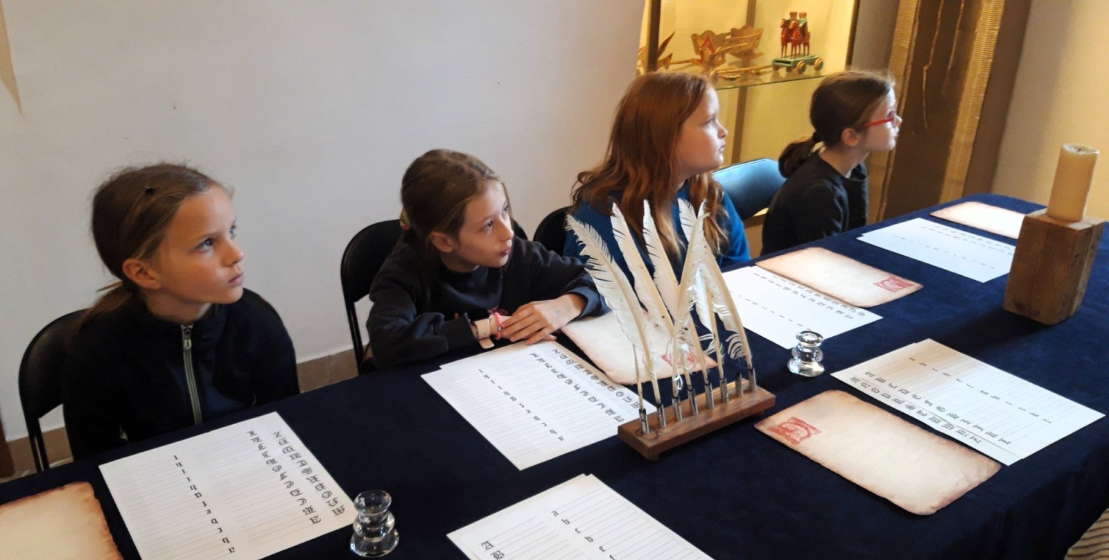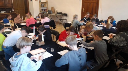 14 listopada 2025 r. uczniowie klasy 3a wybrali się do Zamku Sułkowskich w Bielsku-Białej. Uczestniczyli w zajęciach warsztatowych pt.: „W pracowni średniowiecznego skryby, czyli sztuka dawnego pisania”. Pracownicy muzeum zaprosili dzieci w niezwykłą podróż w świat pisma. Przygodę rozpoczęto od malowideł naskalnych, następnie poznano hieroglify egipskie, pismo klinowe, fenickie, a wędrówkę zakończono na alfabecie łacińskim. Uczestnicy warsztatów mieli okazję wczuć się w rolę dawnego skryby i spróbować techniki pisania gęsim piórem. Uczniowie przygotowali swój dokument na wzór średniowiecznych pergaminów, a nietykalności powstałych pism strzegła pieczęć lakowa, odlana na zakończenie warsztatów.