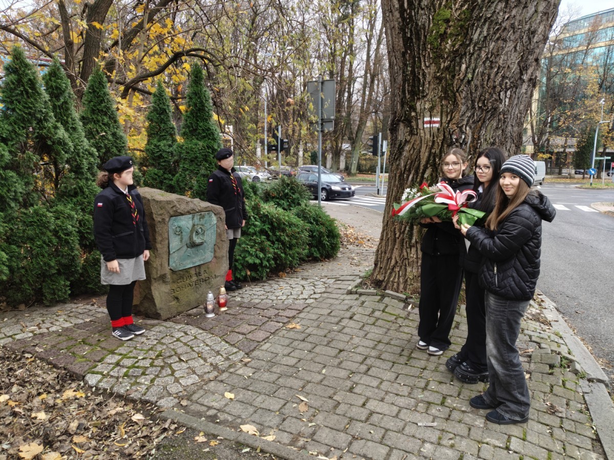 Zgodnie z wieloletnią tradycją w przeddzień Narodowego Święta Niepodległości uczniowie naszej szkoły pełnili honorową wartę i w imieniu społeczności szkolnej złożyli kwiaty pod Pomnikiem Żołnierzy Armii Krajowej oraz przy obelisku poświęconym Druhowi Mieczysławowi Piekiełko.