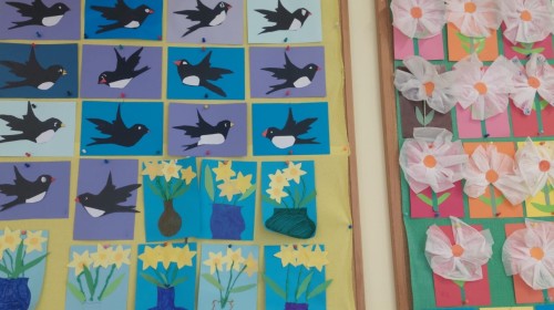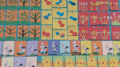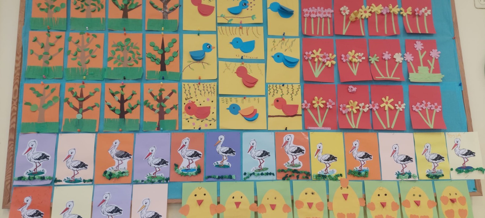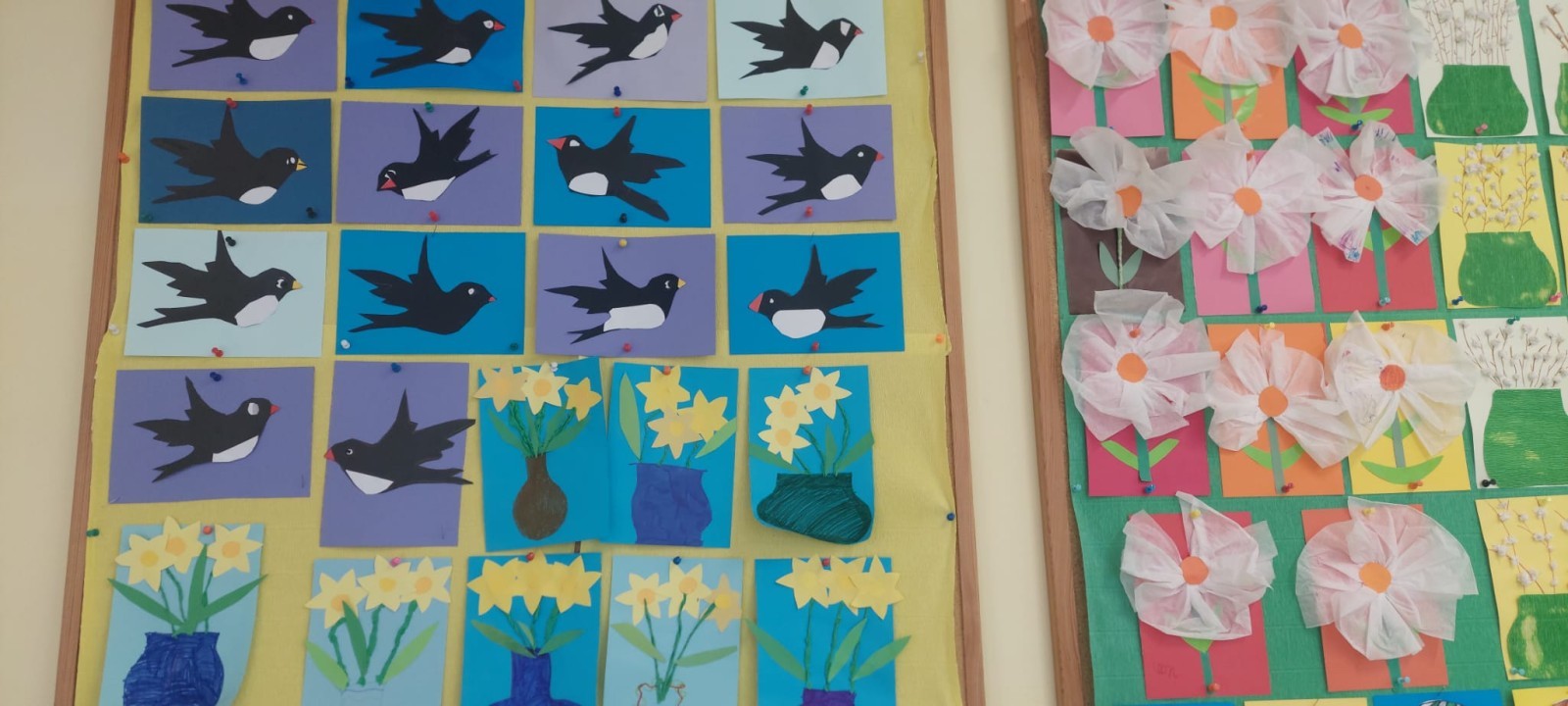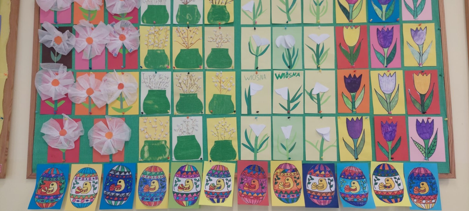 Uczniowie uczęszczający do świetlicy na zajęciach plastycznych wykonali cykl prac związanych z ulubioną porą roku - WIOSNĄ.