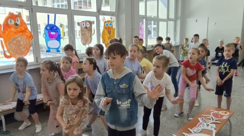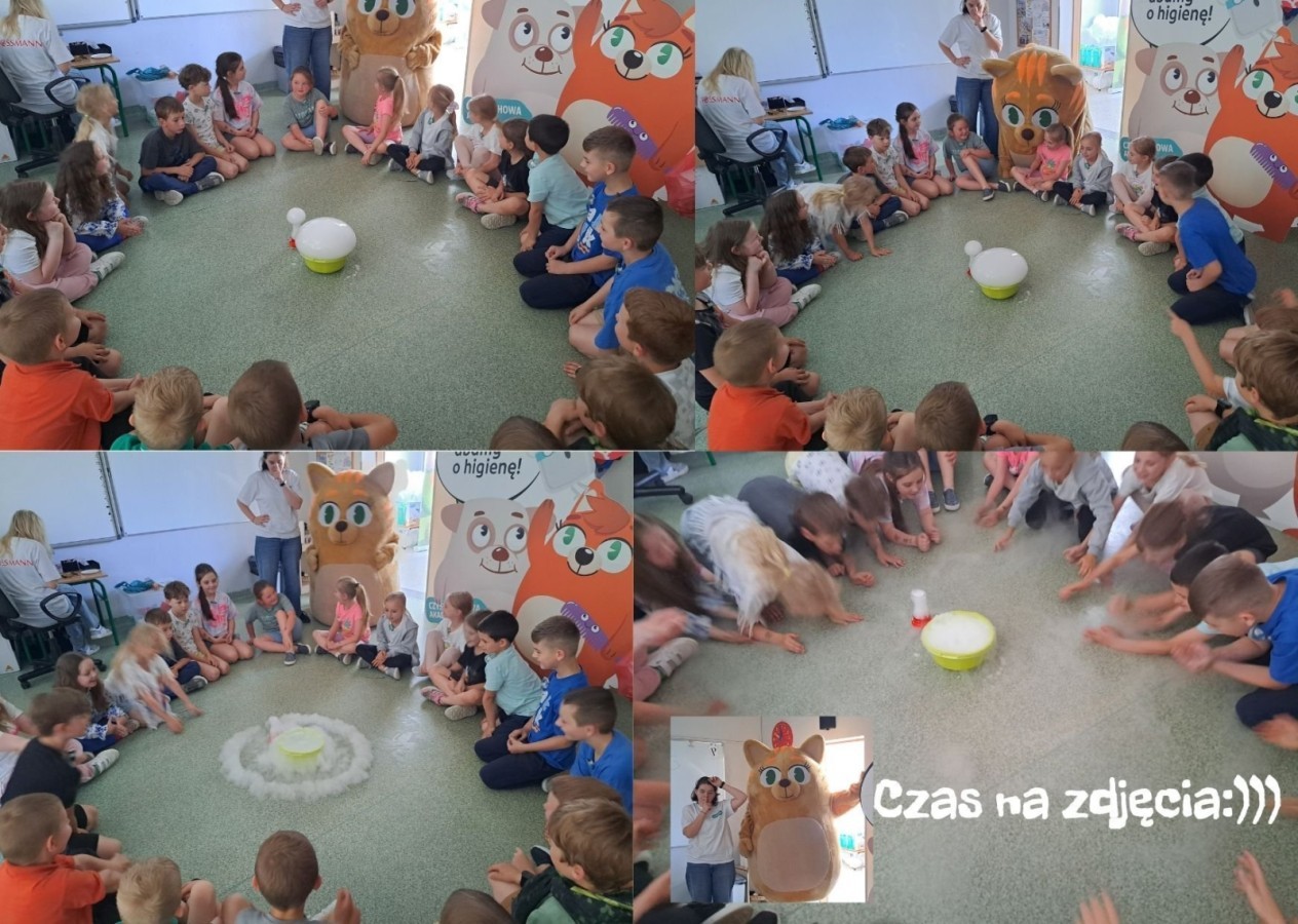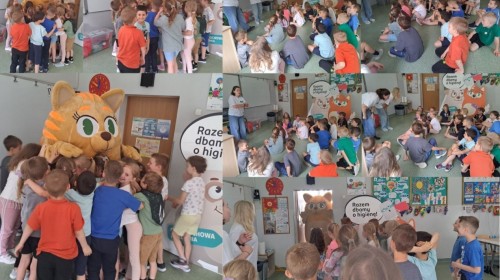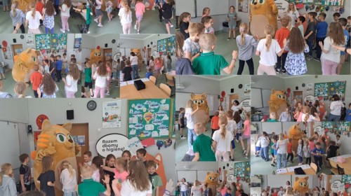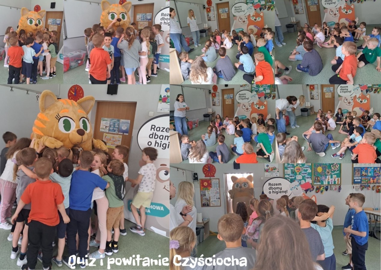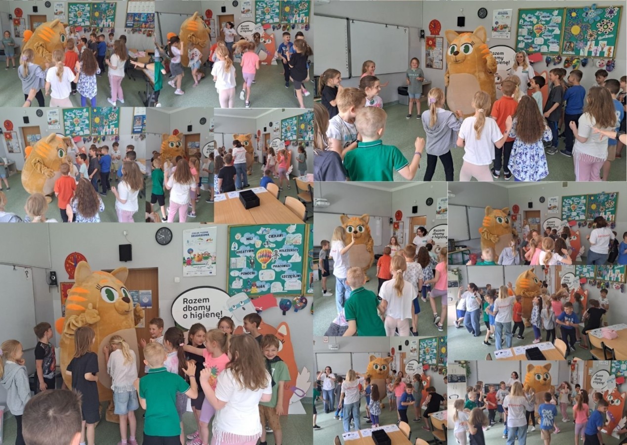 Druga część wizyty przeznaczona była dla pozostałych uczniów klas 1-3. Każda z klas miała okazję posłuchać piosenki, zatańczyć razem z Czyściochem, przybić mu piątkę, przytulić się
