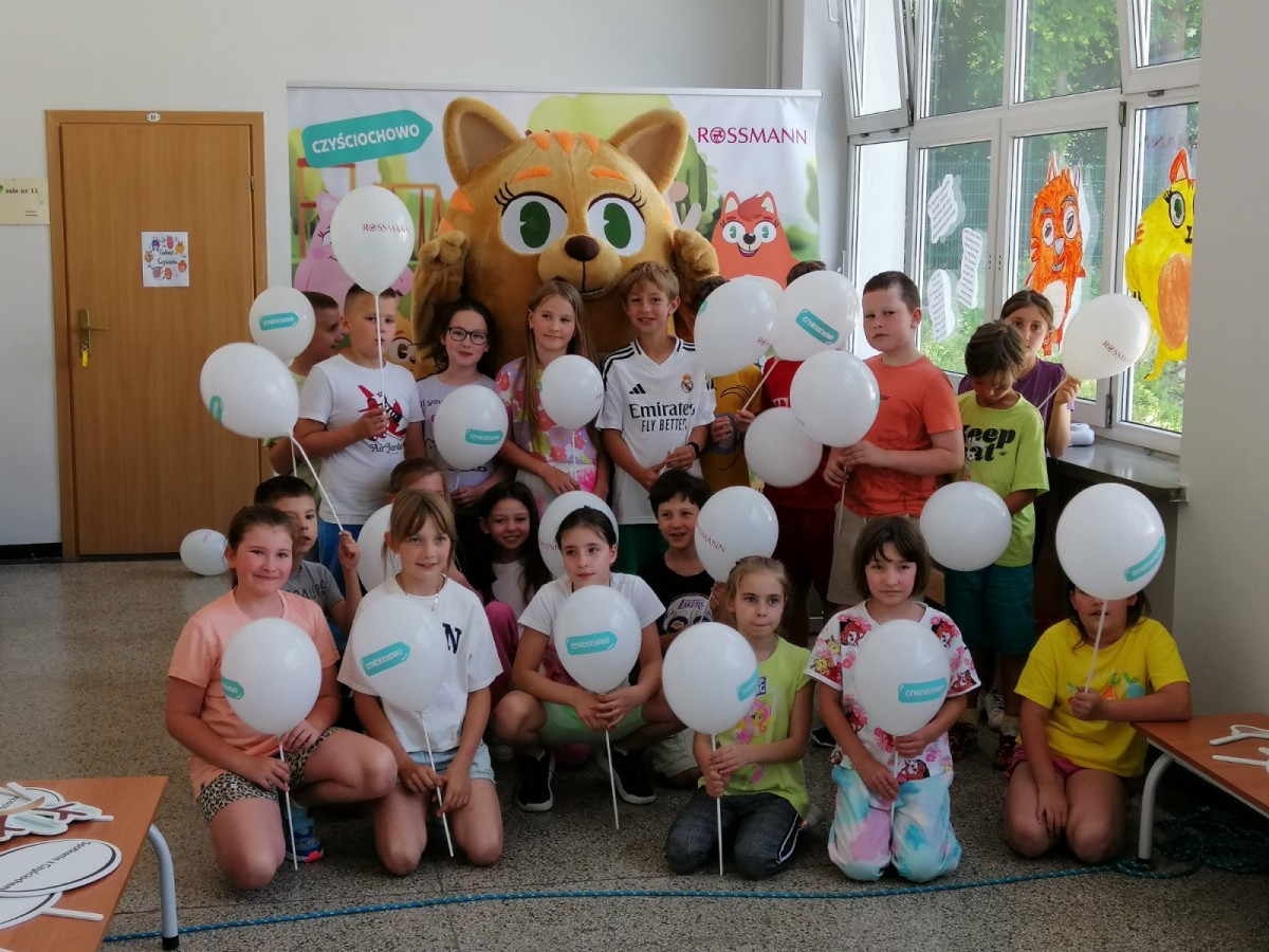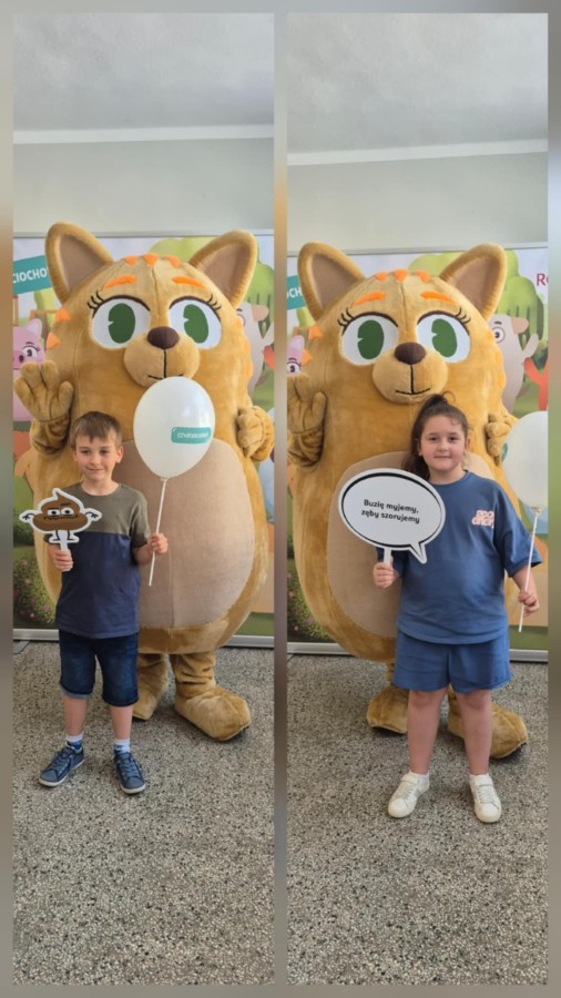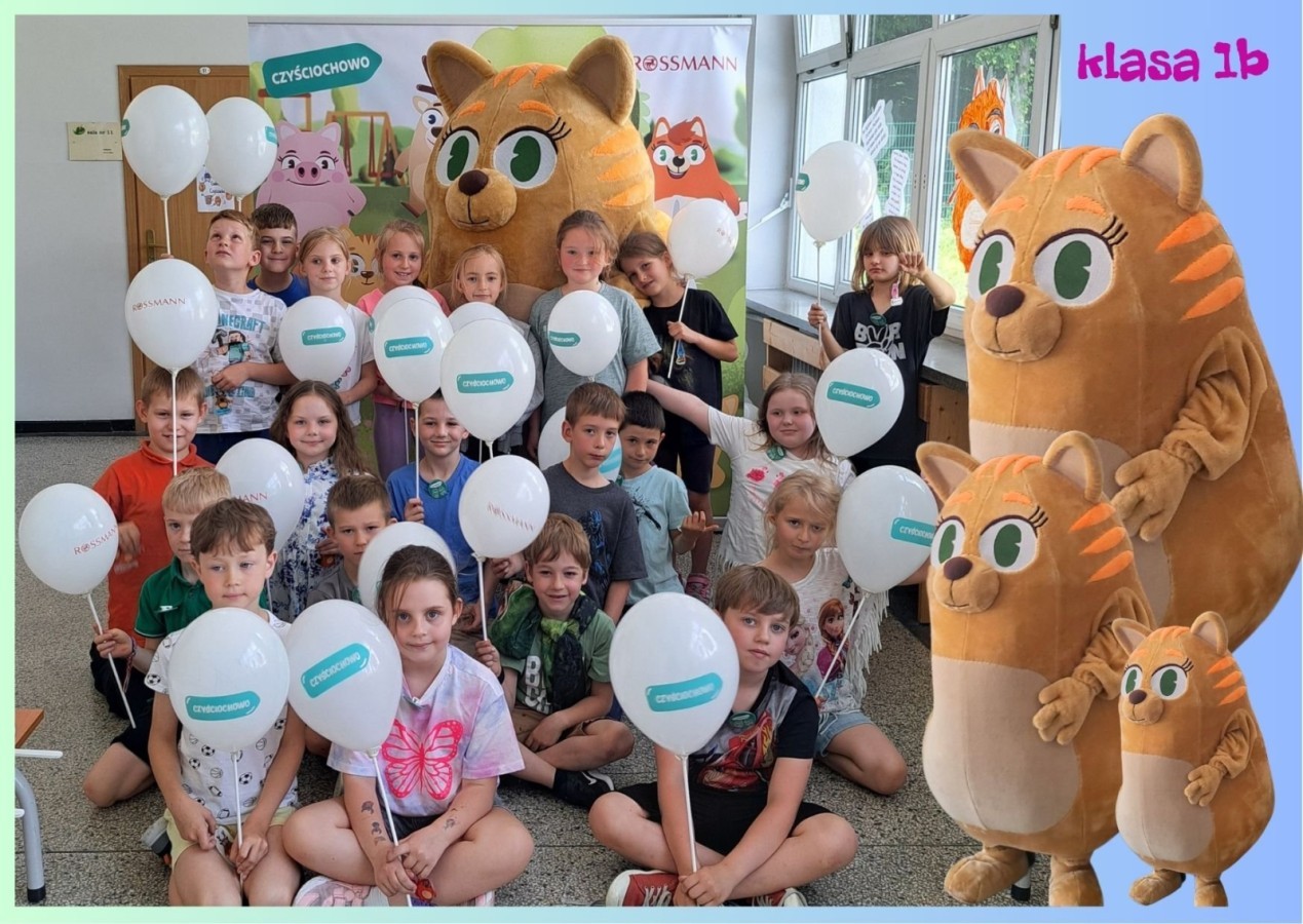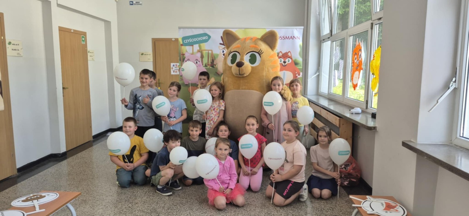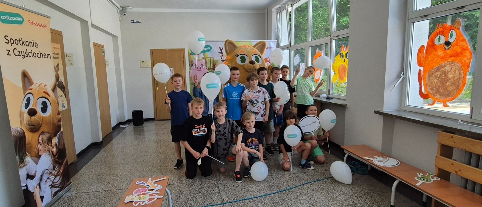 Dzień 4 czerwca 2025r. był w naszej szkole wyjątkowy, bowiem odwiedził nas niezwykły gość – jeden z bohaterów Akademii Czyściochowej. W towarzystwie swoich kolegów z programu Rossmann, w ramach nagrody za udział w konkursie „Zaproś Czyściocha do szkoły”, przybyła do nas Pupilka – wyjątkowa kotka, która miała za zadanie nie tylko nas zabawić, ale również przypomnieć o podstawowych zasadach higieny osobistej.