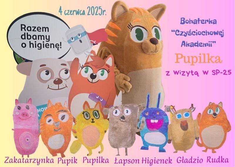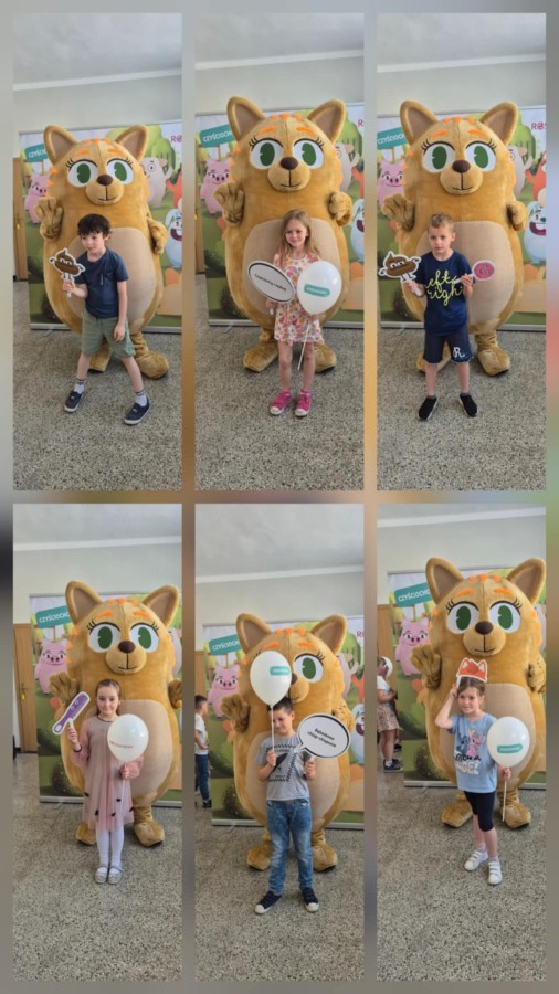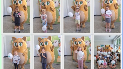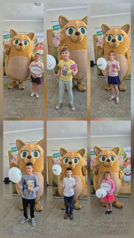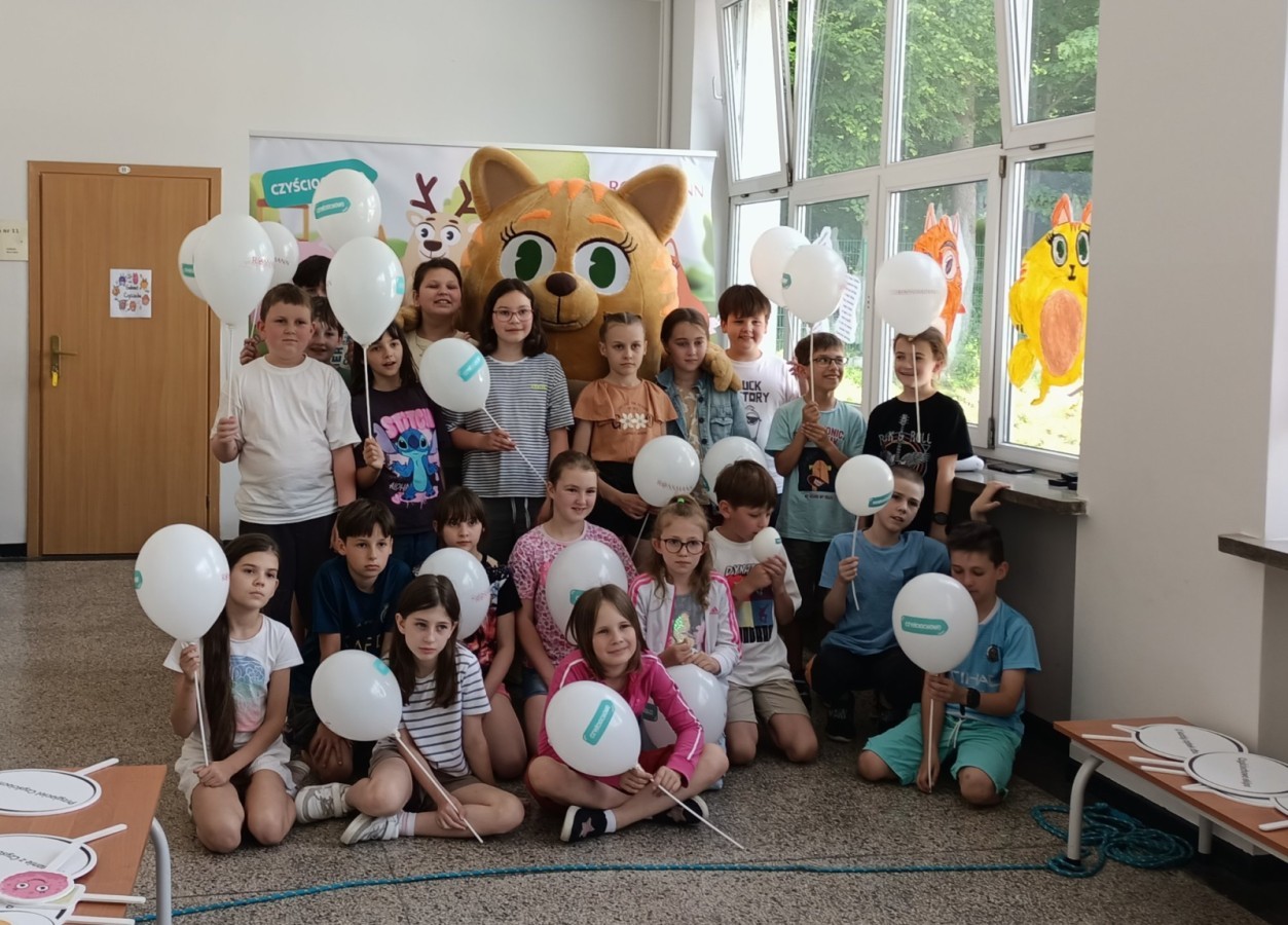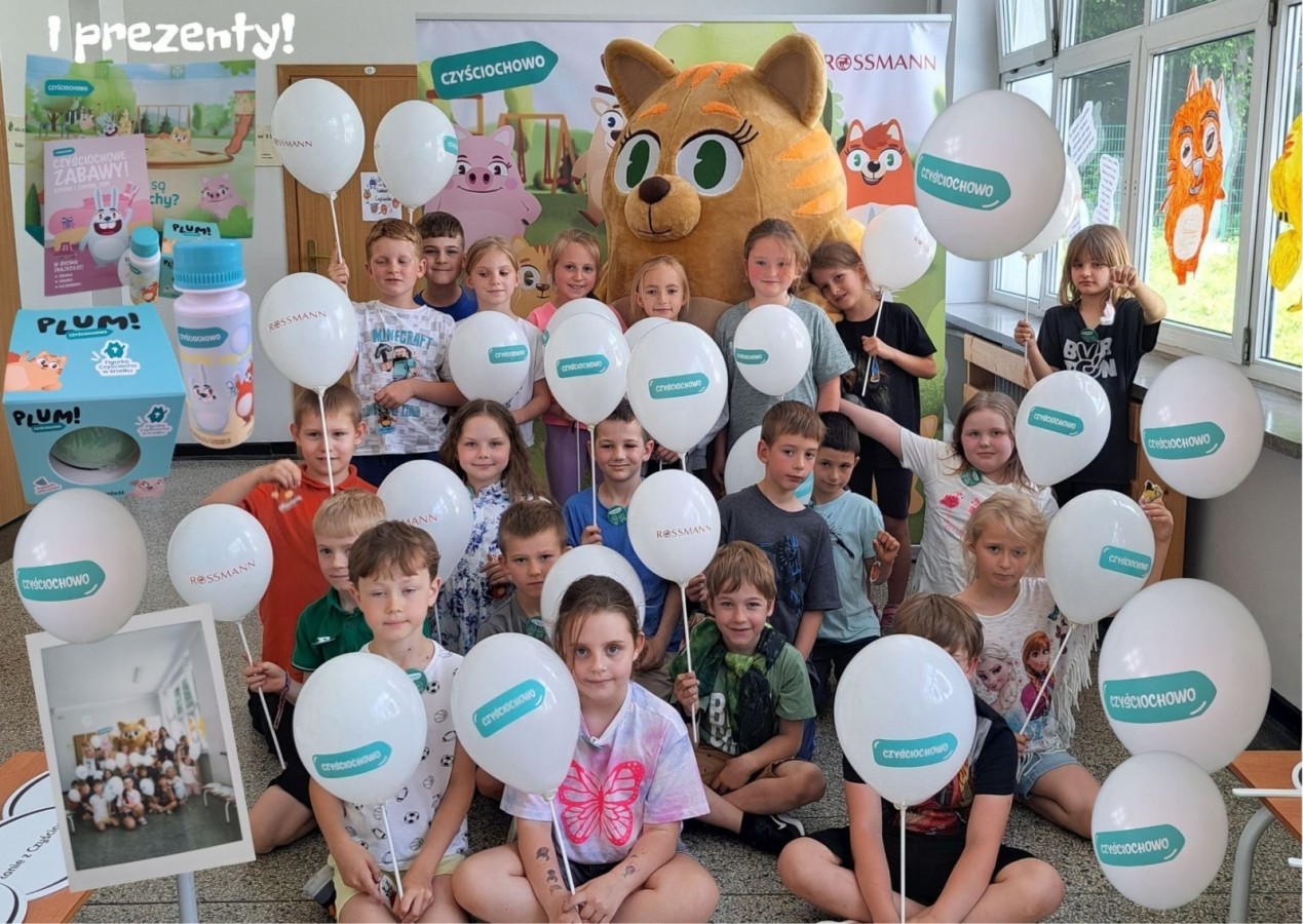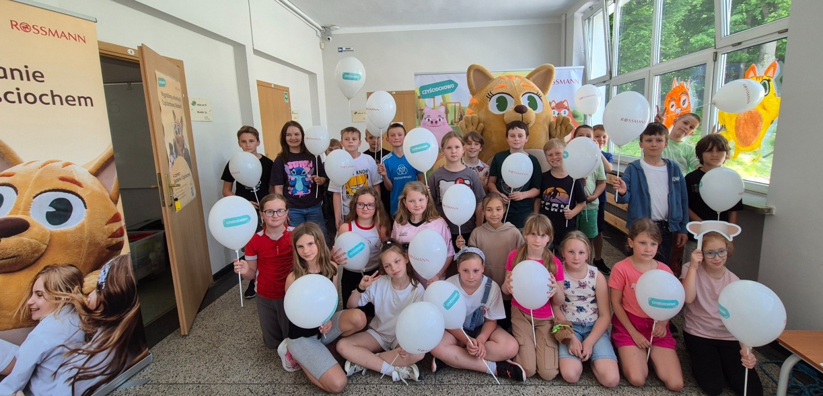 Dzień 4 czerwca 2025r. był w naszej szkole wyjątkowy, bowiem odwiedził nas niezwykły gość – jeden z bohaterów Akademii Czyściochowej. W towarzystwie swoich kolegów z programu Rossmann, w ramach nagrody za udział w konkursie „Zaproś Czyściocha do szkoły”, przybyła do nas Pupilka – wyjątkowa kotka, która miała za zadanie nie tylko nas zabawić, ale również przypomnieć o podstawowych zasadach higieny osobistej.