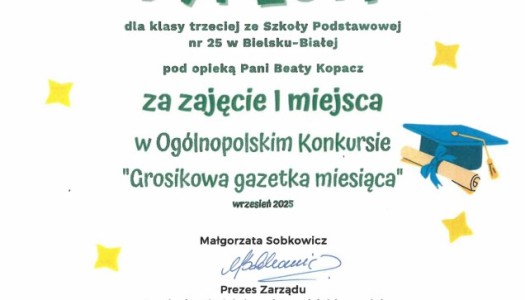 Mistrz Rachunku Pamięciowego - październik 2025 klasa 4 I - Piotr Szatan II - Alicja Polak klasa 5 I - Mariia Chopenko, Illia Ku...