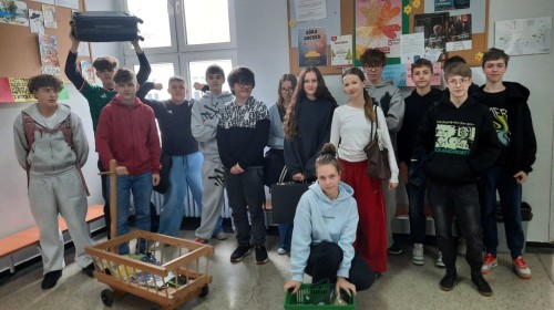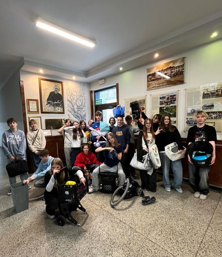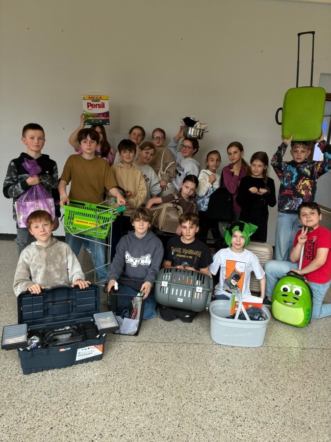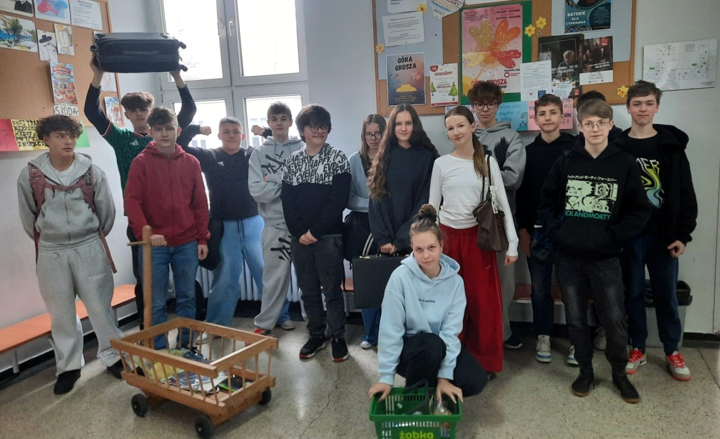 15 marca to był Dzień Bez Plecaka w naszej szkole. Kreatywność uczniów okazała się zdumiewająca. Na przykład uczniowie klasy IV a przyszli do szkoły z kontenerami dla zwierząt, walizkami, skrzynką narzędziową, wózkiem sklepowym, garnkiem, koszykami, torbami i workami na śmieci, a nawet wózkiem transportowym oraz pudełkiem po proszku do prania. Uczennica klasy VI miała jeżdżącą półeczkę.