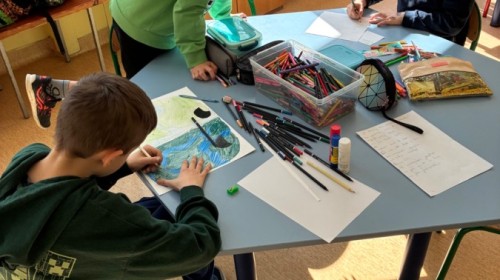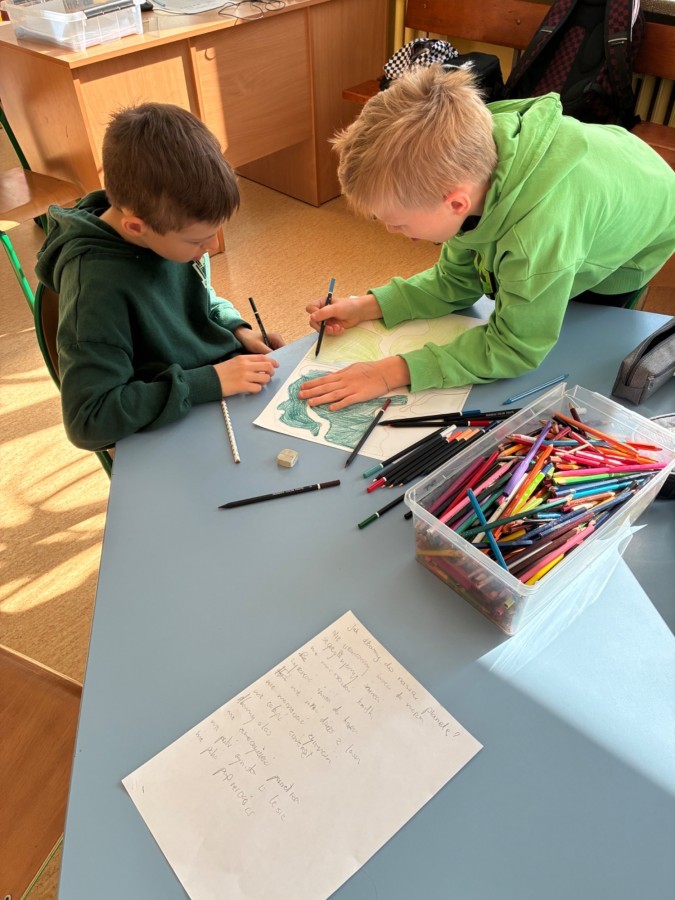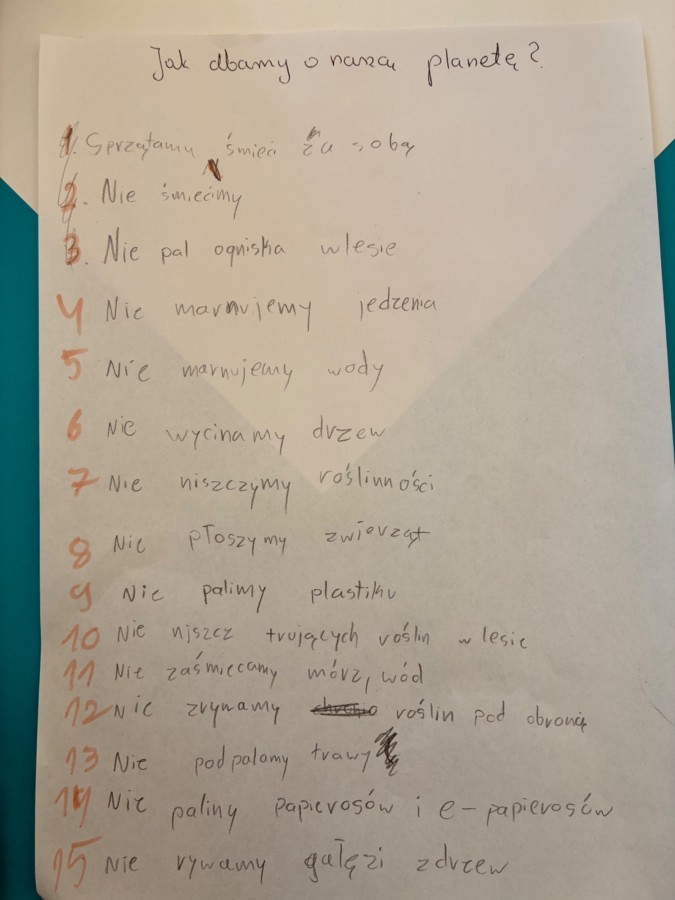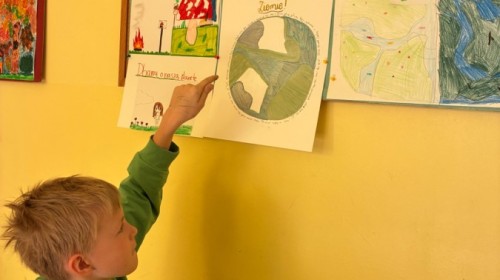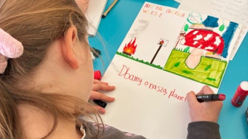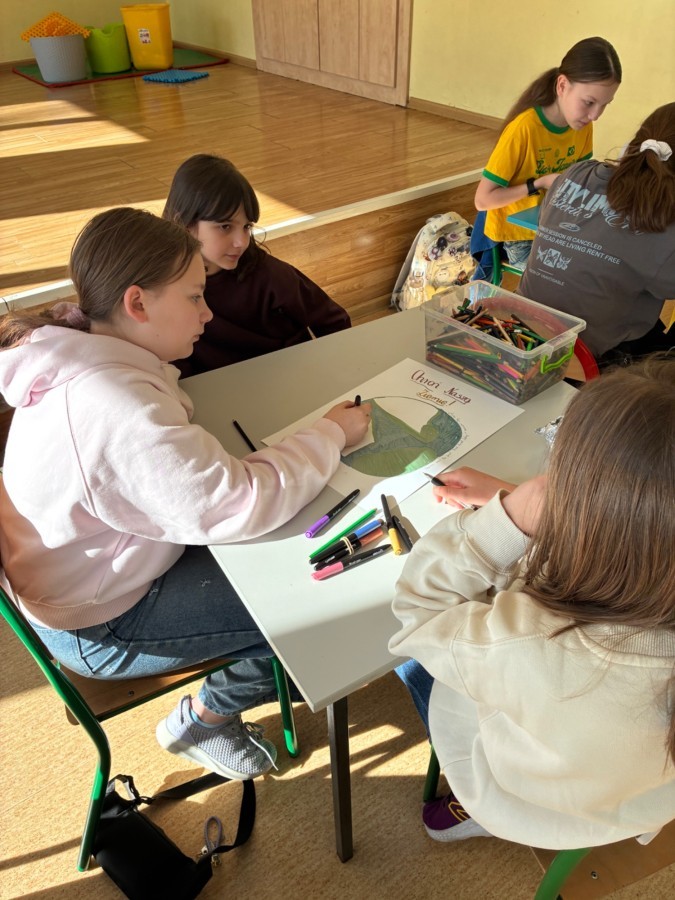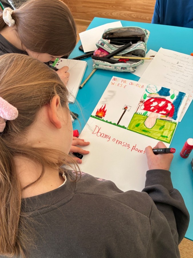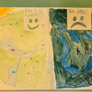 W ramach kwietniowych obchodów Dnia Ziemi uczestnicy świetlicy pracowali w grupach, zastanawiając się, jak najlepiej dbać o naszą planetę. Wspólnie omawiali codzienne działania, które pomagają chronić środowisko, a swoje pomysły przedstawili w formie kolorowych i pomysłowych plakatów.