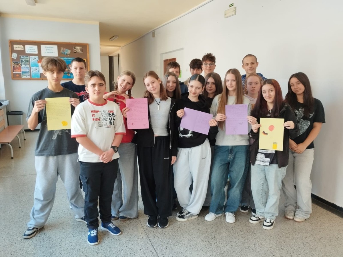Uczniowie klasy 8b w ramach innowacji pedagogicznej z języka niemieckiego „Deutsch macht Spaß ” napisali i wysłali krótkie listy do swoich rówieśników, w których opisali siebie, swój wiek, miejsce zamieszkania, zainteresowania oraz szkołę, do której uczęszczają. Otrzymali również odpowiedzi zwrotne z zaprzyjaźnionej szkoły. Uczniowie są pod wrażeniem budowania nowych znajomości i czekają na kolejne zadania w ramach innowacji. Przekonują się, że nauka języka staje się prawdziwą przygodą.
