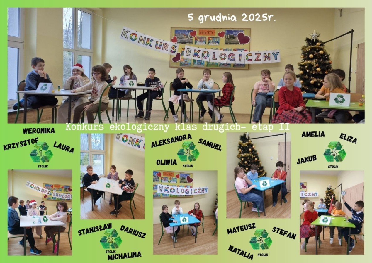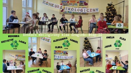1 grudnia w każdej z klas drugich wychowawczynie przeprowadziły test mający wyłonić uczniów, którzy najlepiej będą reprezentowali klasę w czasie finału. Każdy uczestnik miał kartę konkursową na której znajdowały się pytania dotyczące przyrody, ale również ekologii. Z pośród trzech odpowiedzi należało wybrać tę jedną prawdziwą. Rywalizacja była bardzo wyrównana,
