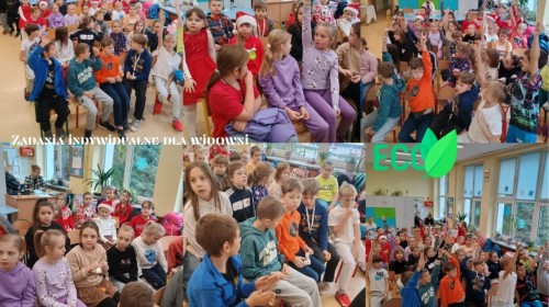 Publiczność konkursowa – czyli pozostałe dzieci z klas 2 nie tylko dopingowały swoich kolegów i koleżanki, ale również odpowiadały na pytania.