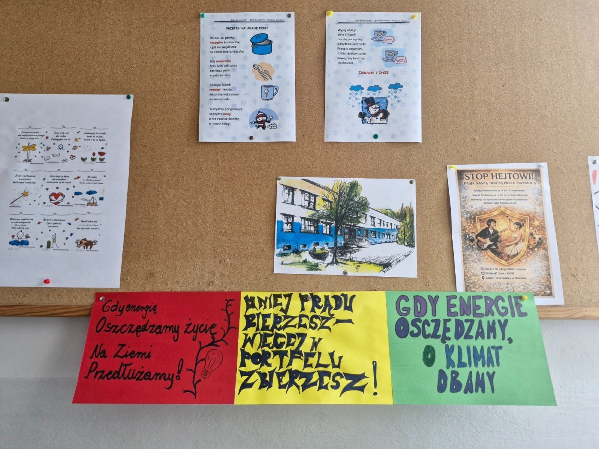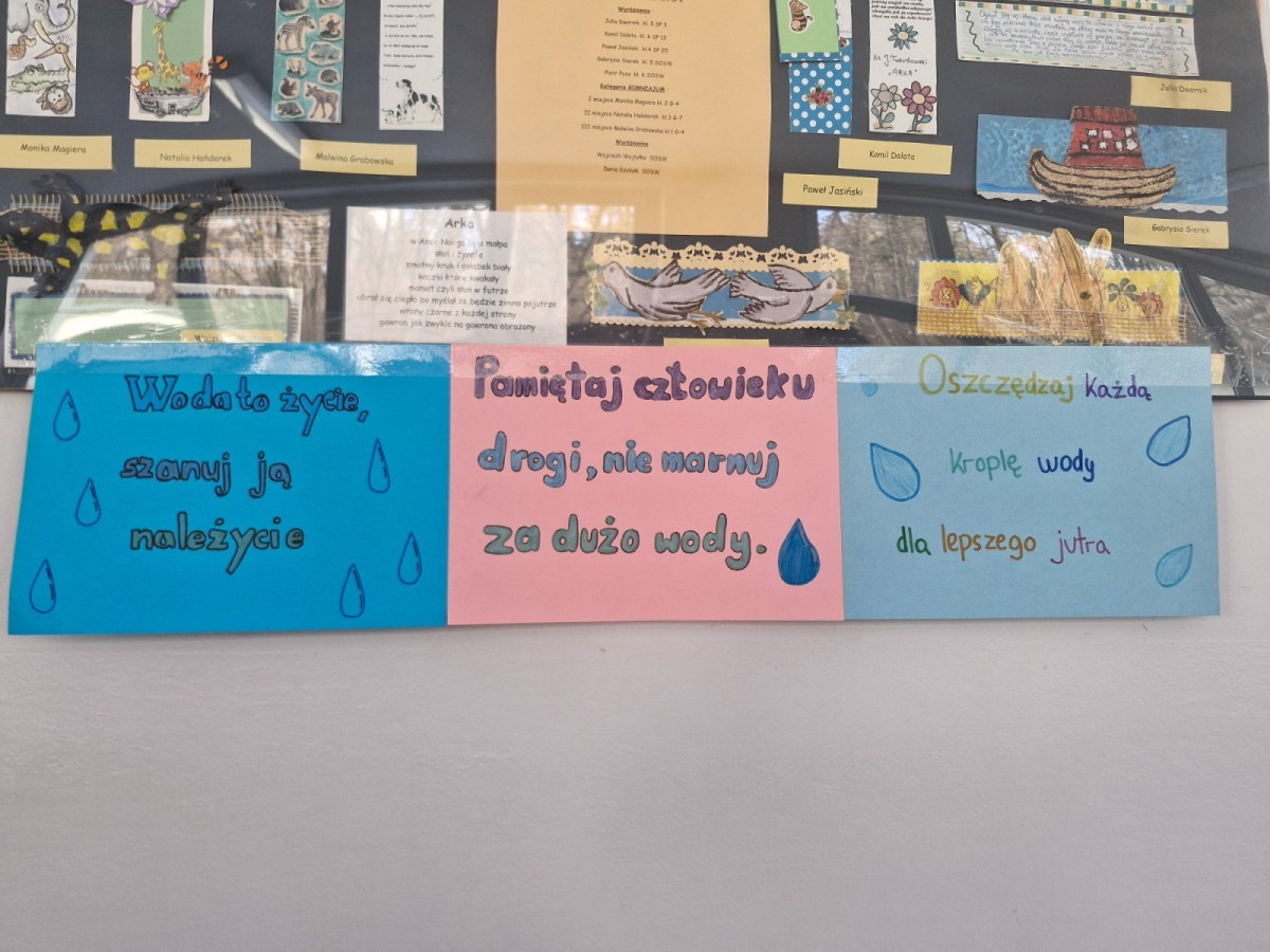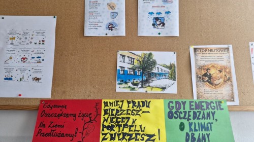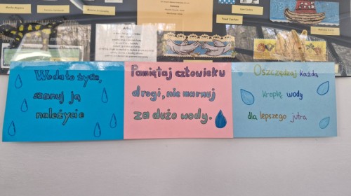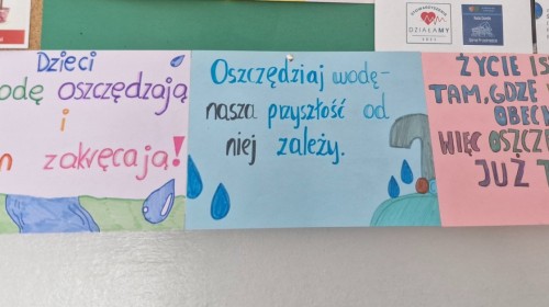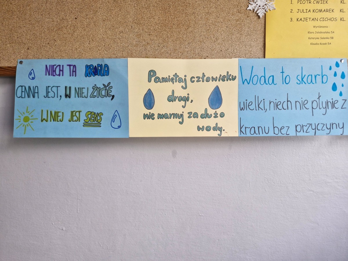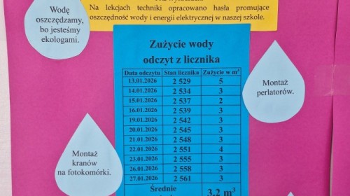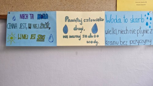Na lekcjach techniki opracowano hasła promujące oszczędność wody i energii elektrycznej w naszej szkole. Opublikowane listy dobrych praktyk i przedsięwzięć prośrodowiskowych będą nam przypominały o poszanowaniu wody i prądu.