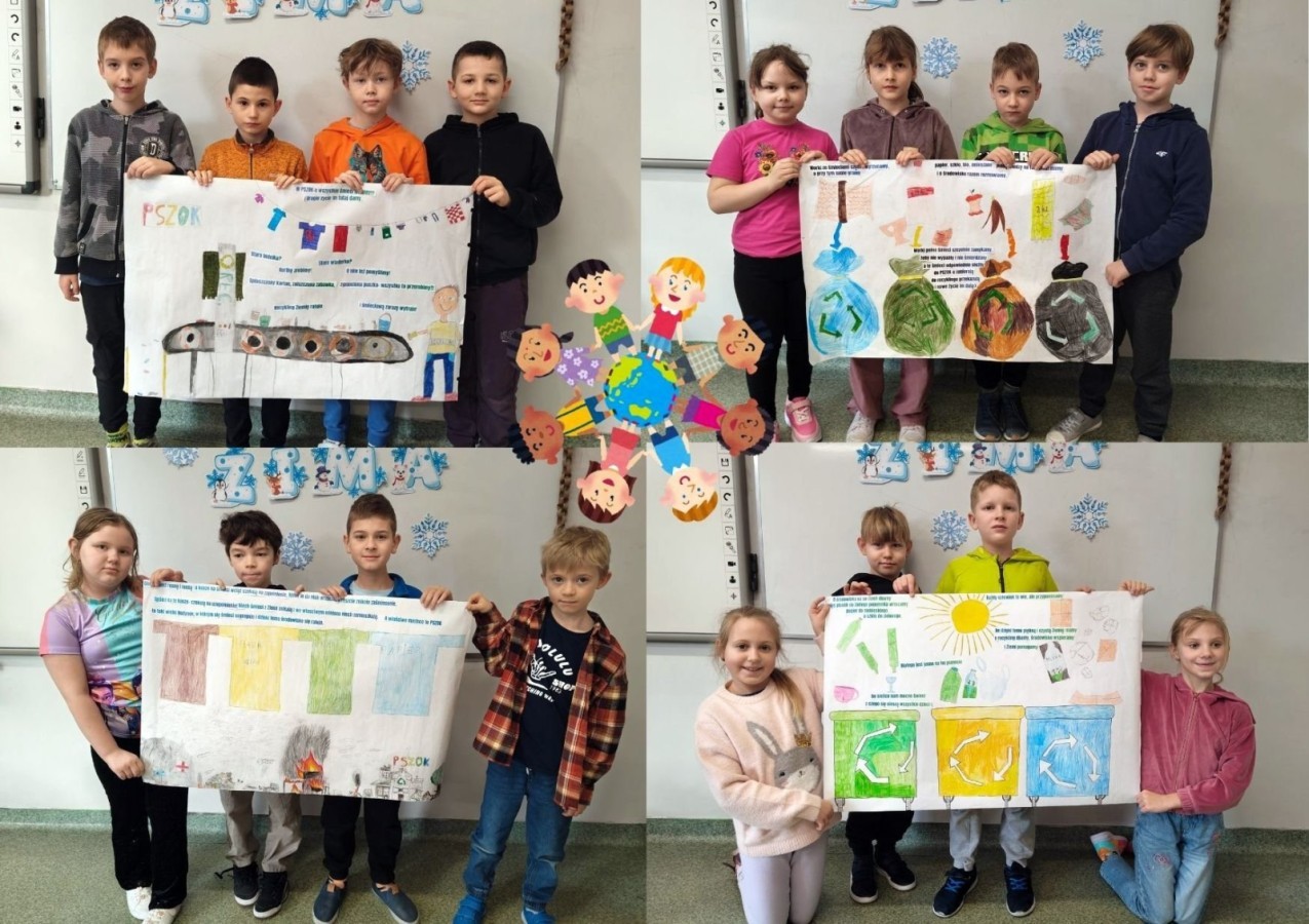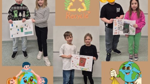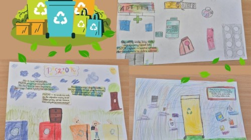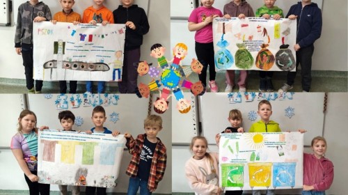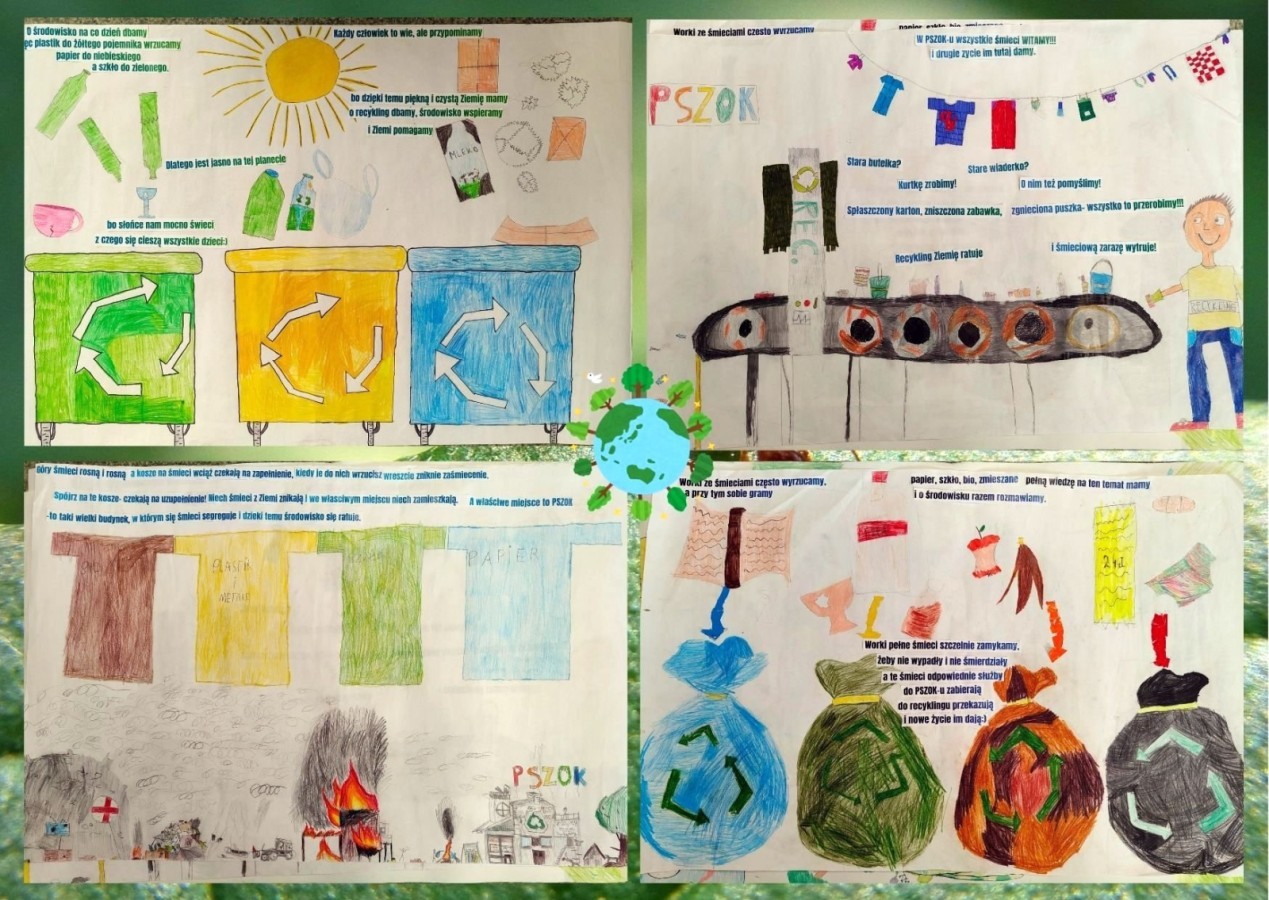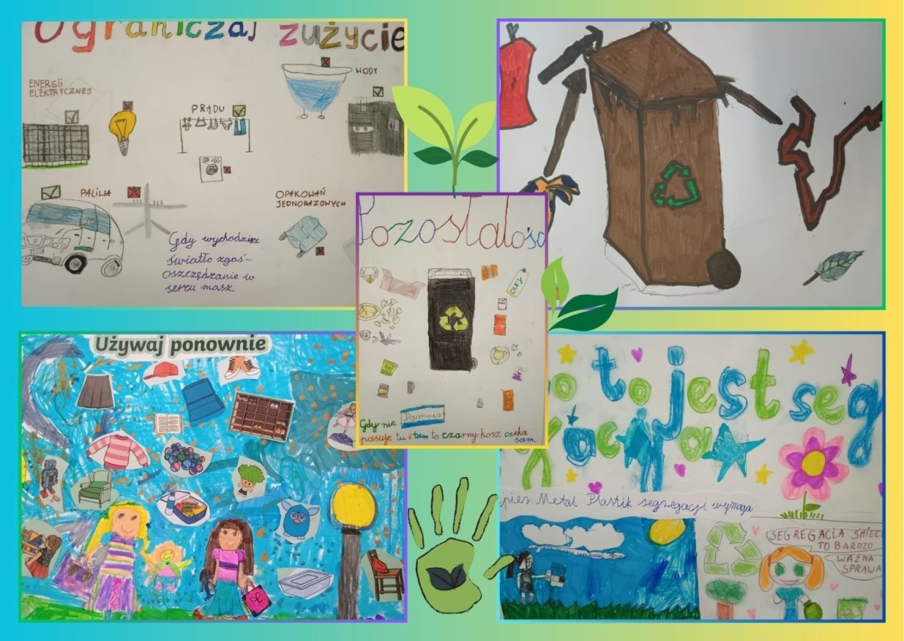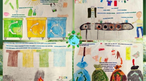 Klasy drugie wykonały kolejne zadanie konkursowe w projekcie „Szanuj Energię , Chroń Klimat”. Tym razem zadaniem naszych drugoklasistów było wykonanie plakatów zachęcających do segregowania śmieci, a także wykorzystania tych które się da i ofiarowania im „drugiego życia”. Uczniowie pracowali w małych 3-4 osobowych zespołach. Praca miała dwa etapy – pierwszy to zaprojektowanie ciekawego plakatu związanego z tematem, a drugi chyba znacznie trudniejszy to wymyślenie rymowanki, wierszyka lub hasła pasującego do pracy plastycznej.