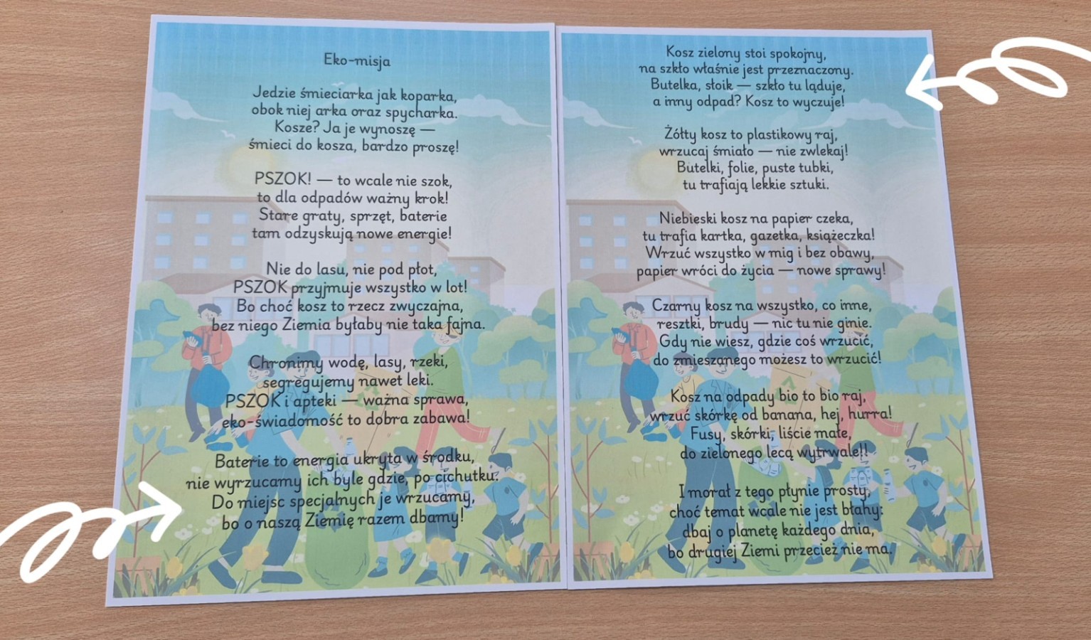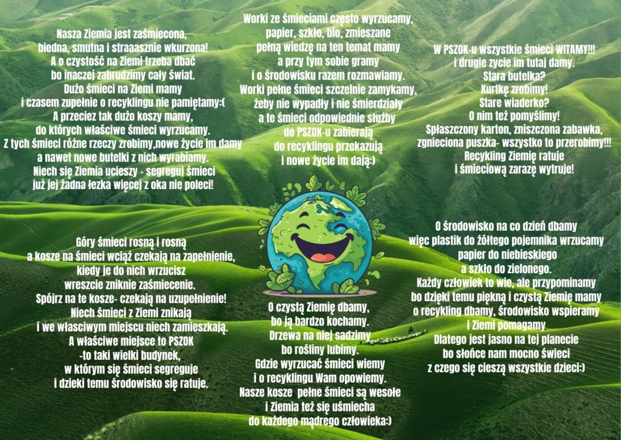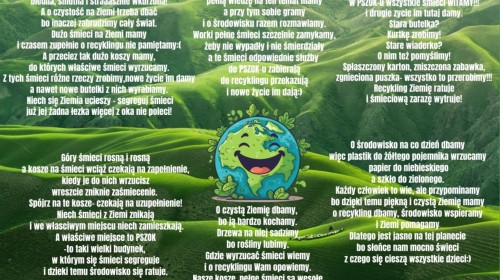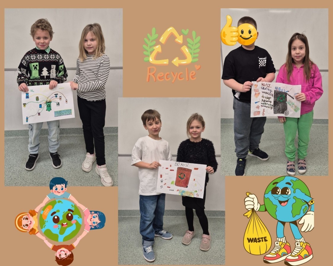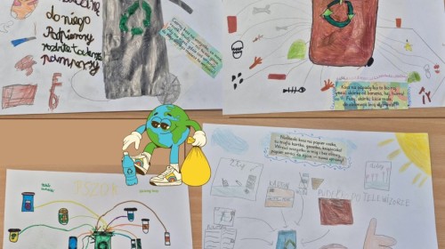 Klasy drugie wykonały kolejne zadanie konkursowe w projekcie „Szanuj Energię , Chroń Klimat”. Tym razem zadaniem naszych drugoklasistów było wykonanie plakatów zachęcających do segregowania śmieci, a także wykorzystania tych które się da i ofiarowania im „drugiego życia”. Uczniowie pracowali w małych 3-4 osobowych zespołach. Praca miała dwa etapy – pierwszy to zaprojektowanie ciekawego plakatu związanego z tematem, a drugi chyba znacznie trudniejszy to wymyślenie rymowanki, wierszyka lub hasła pasującego do pracy plastycznej.