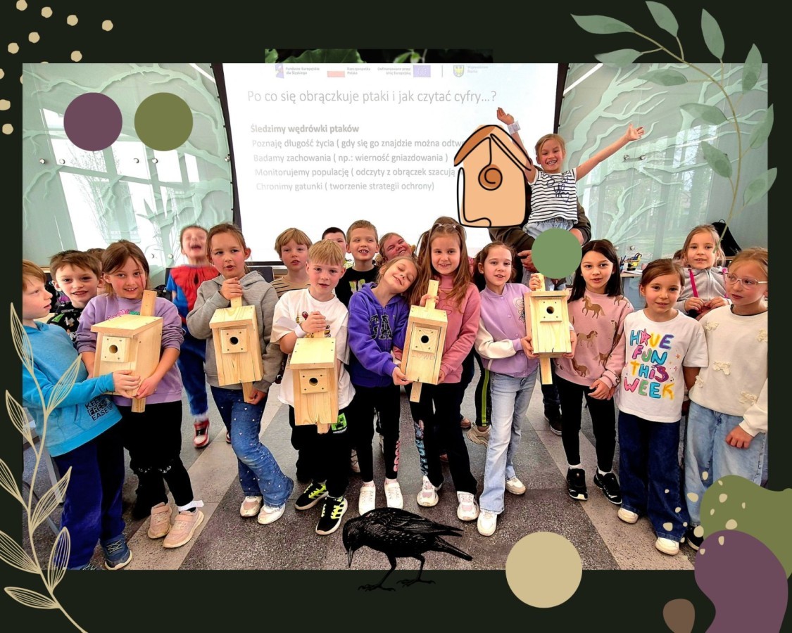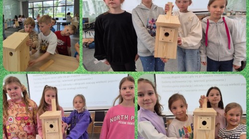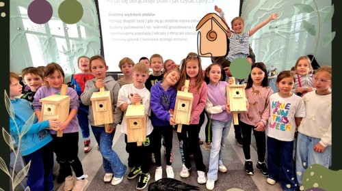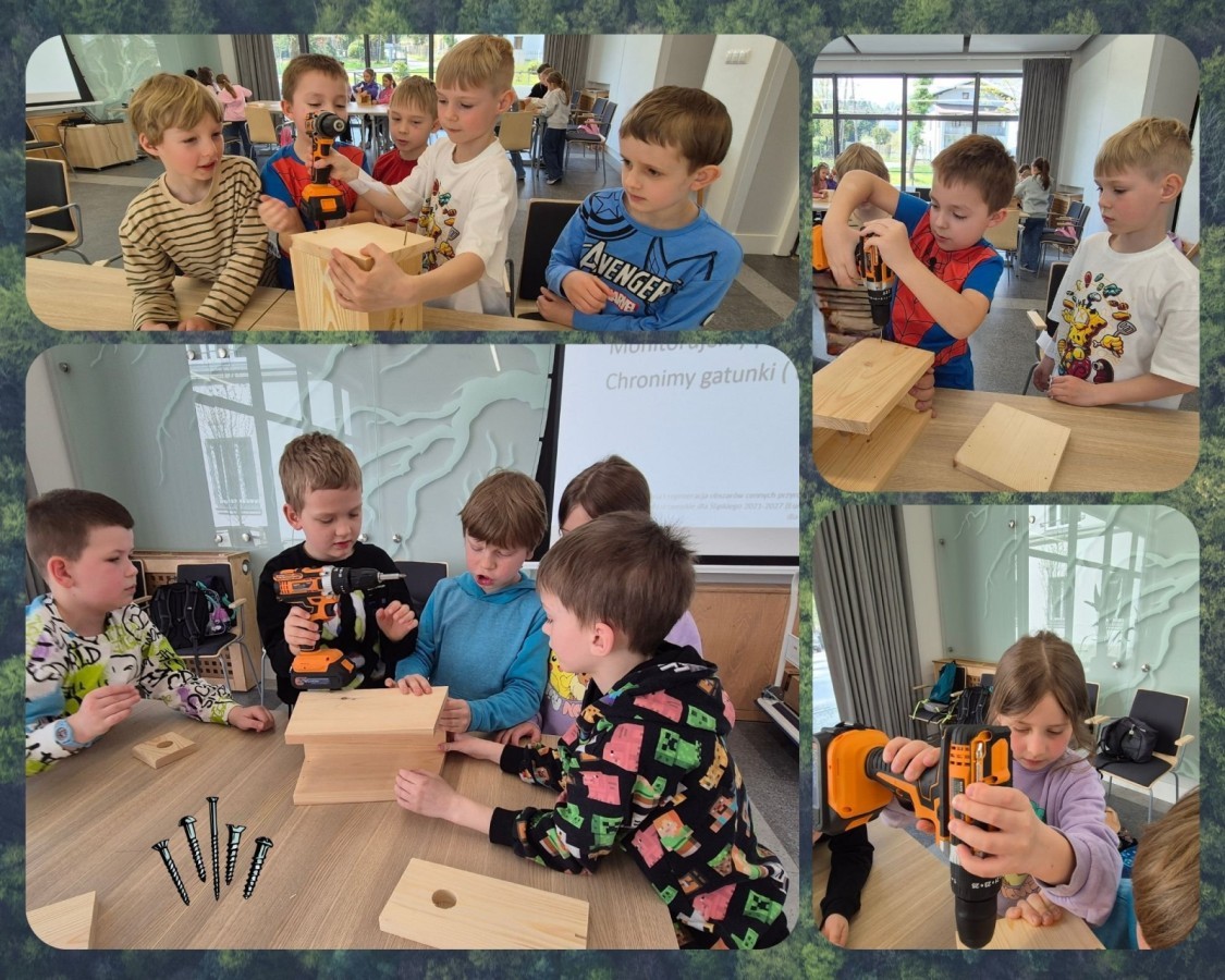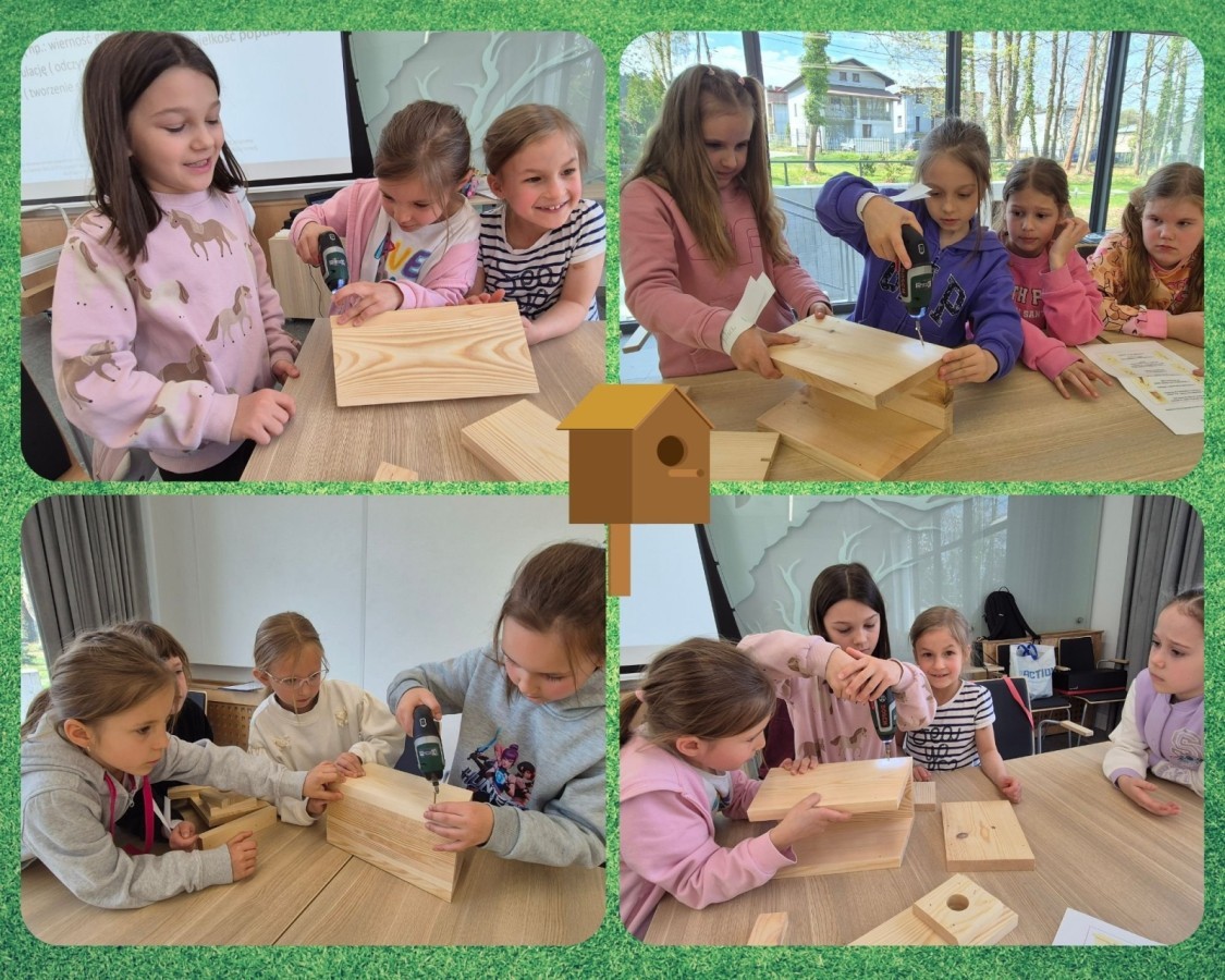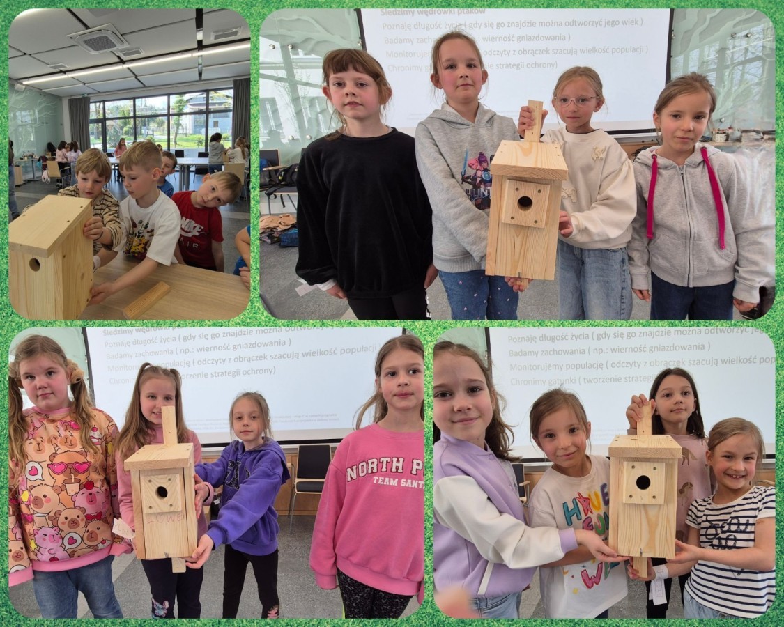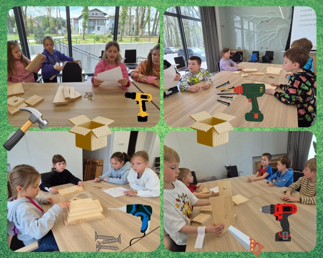 Zwieńczeniem spotkania było wspólne wykonanie drewnianych budek lęgowych, co pozwoliło podkreślić znaczenie ptaków w przyrodzie oraz potrzebę ich ochrony.