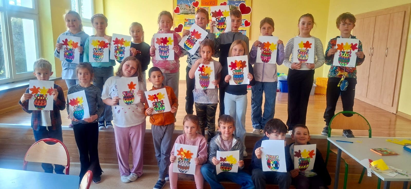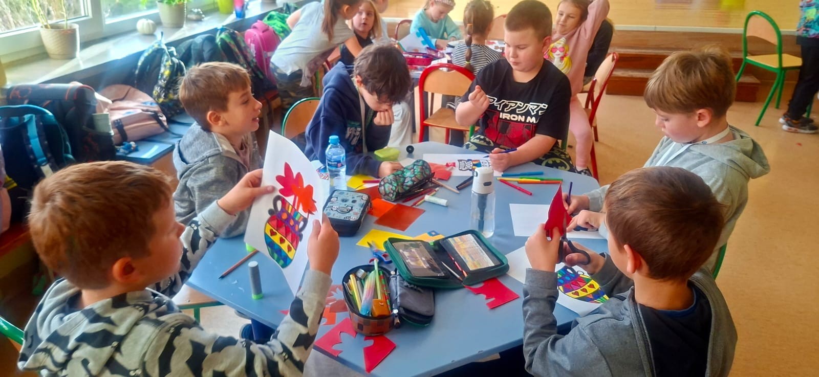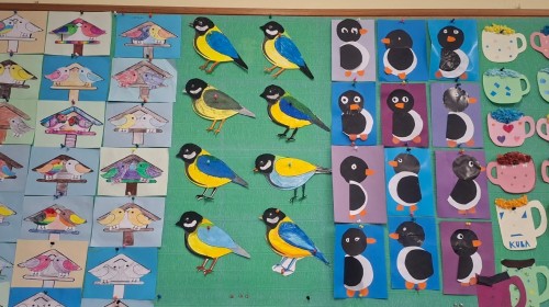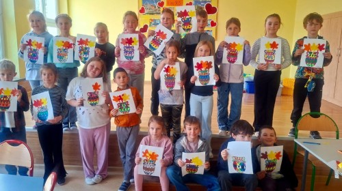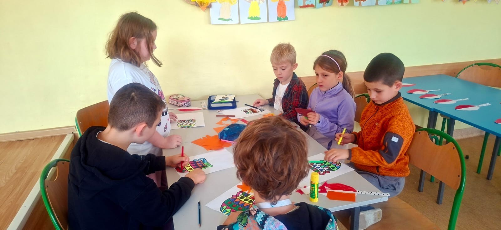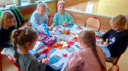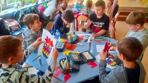W świetlicy szkolnej odbywają się zajęcia plastyczne, na których chętnie pracują uczniowie klas 1 - 3.
